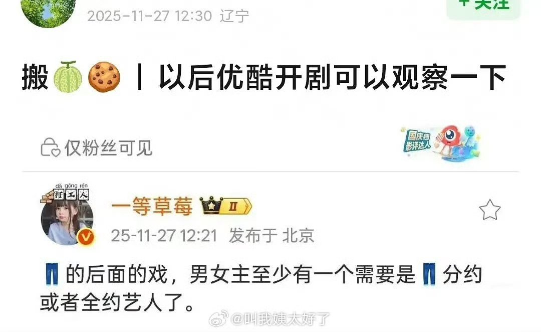 优酷以后要强制用分约/签约艺人了?是不是和桃鹅的太子太女一个说法了,平台这是要和艺人深度捆绑啊