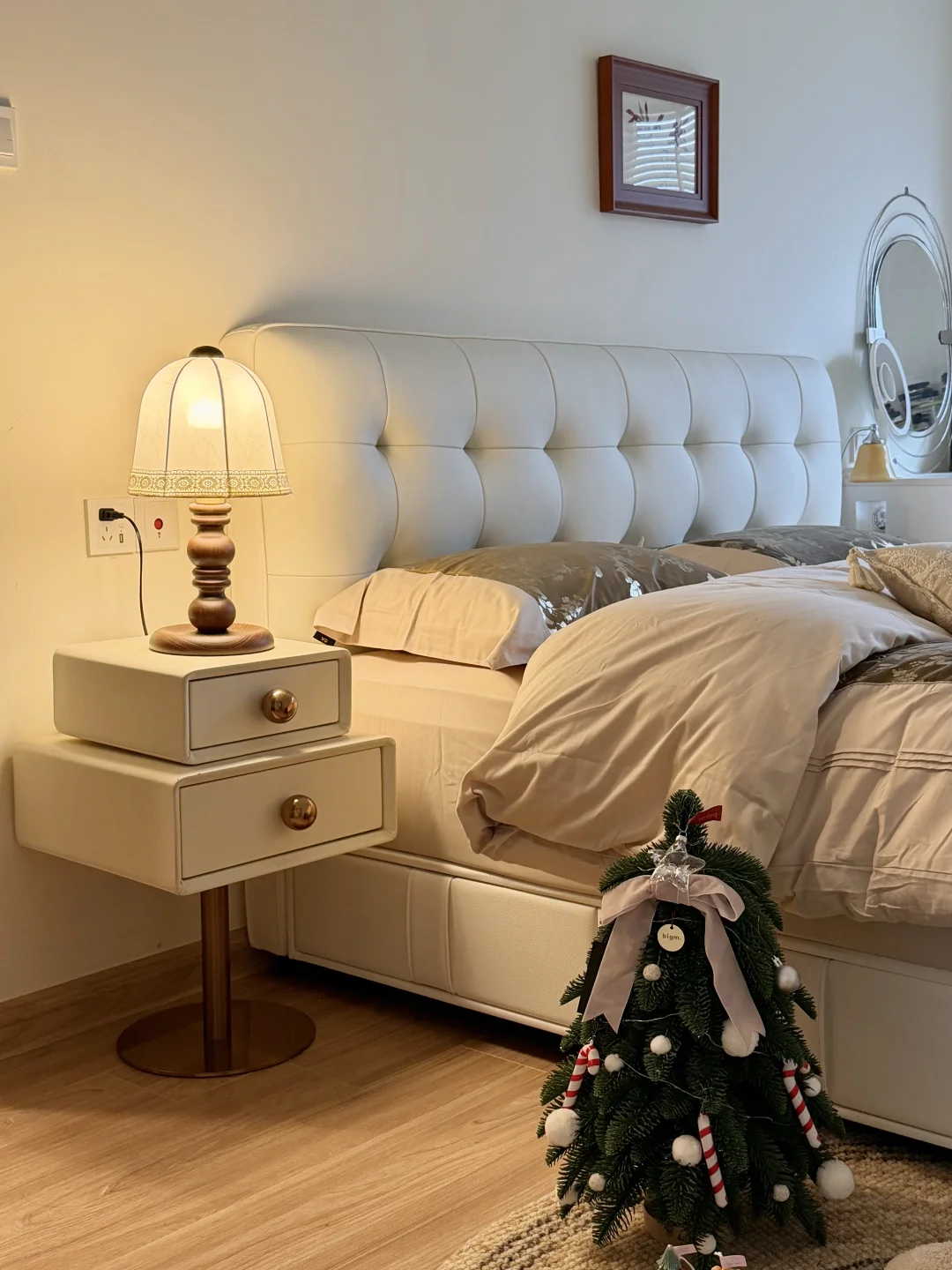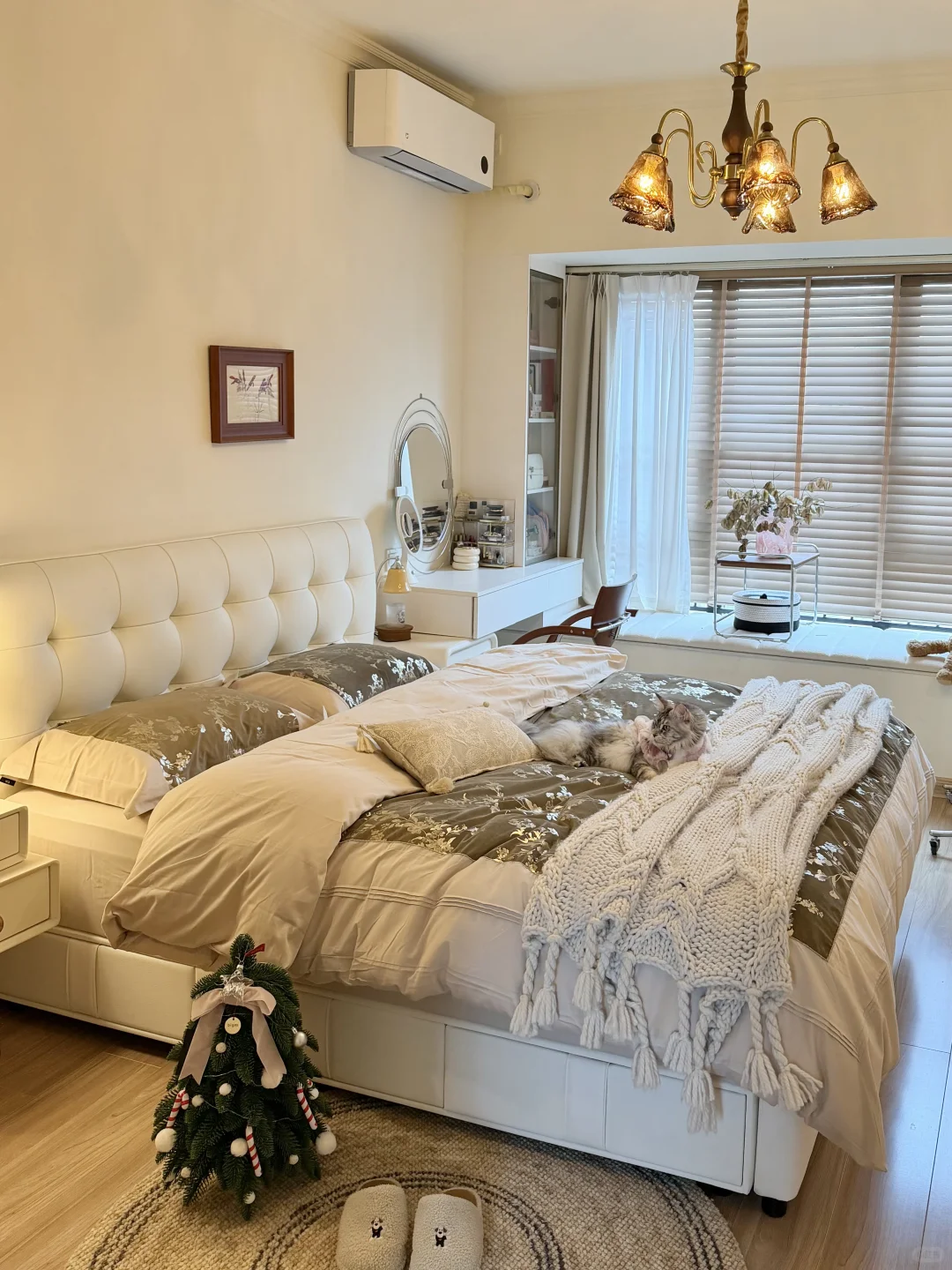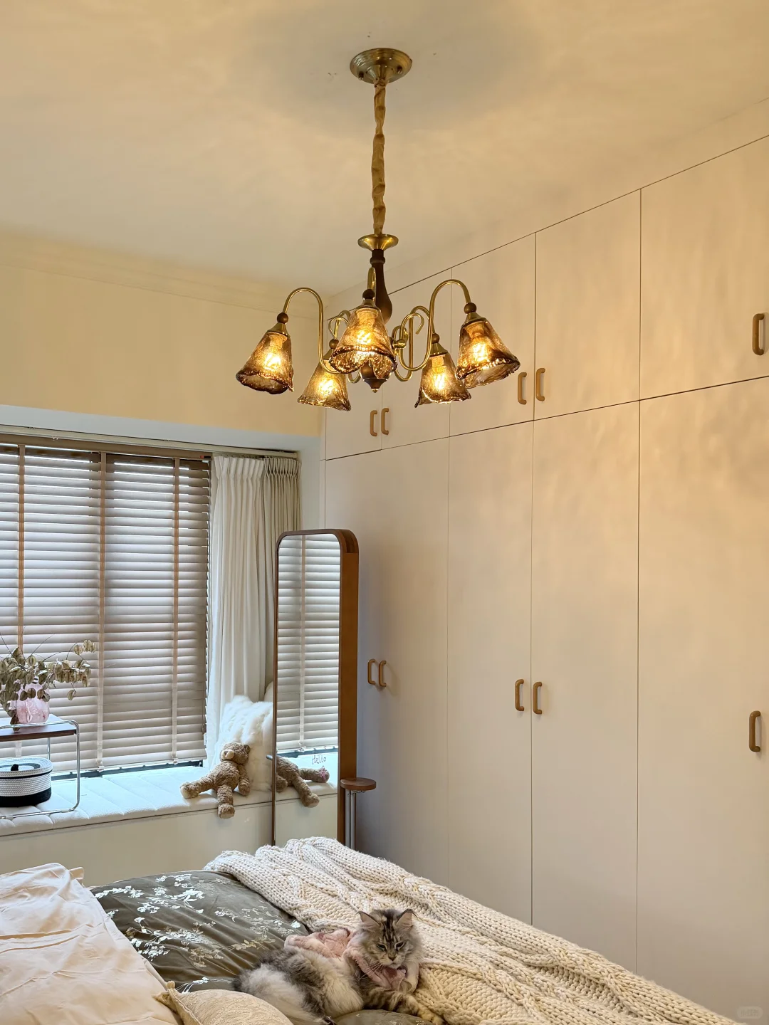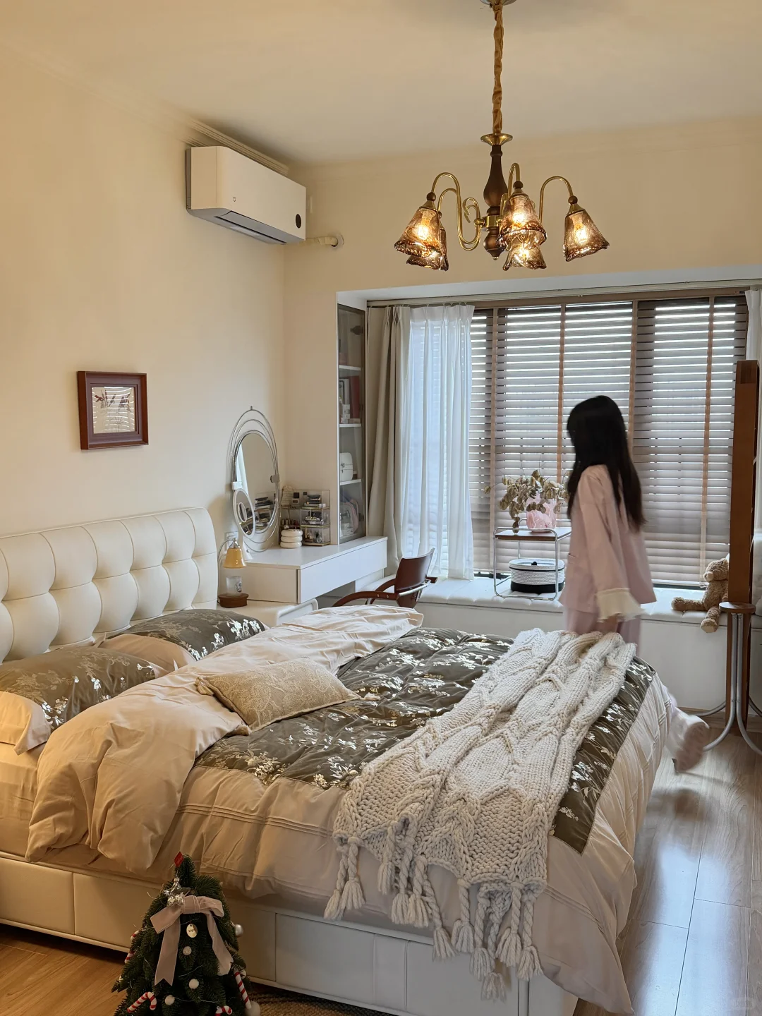 再用一盏漂亮的复古风吊灯点亮氛围感,让整个空间干净、温柔,又舒适。
