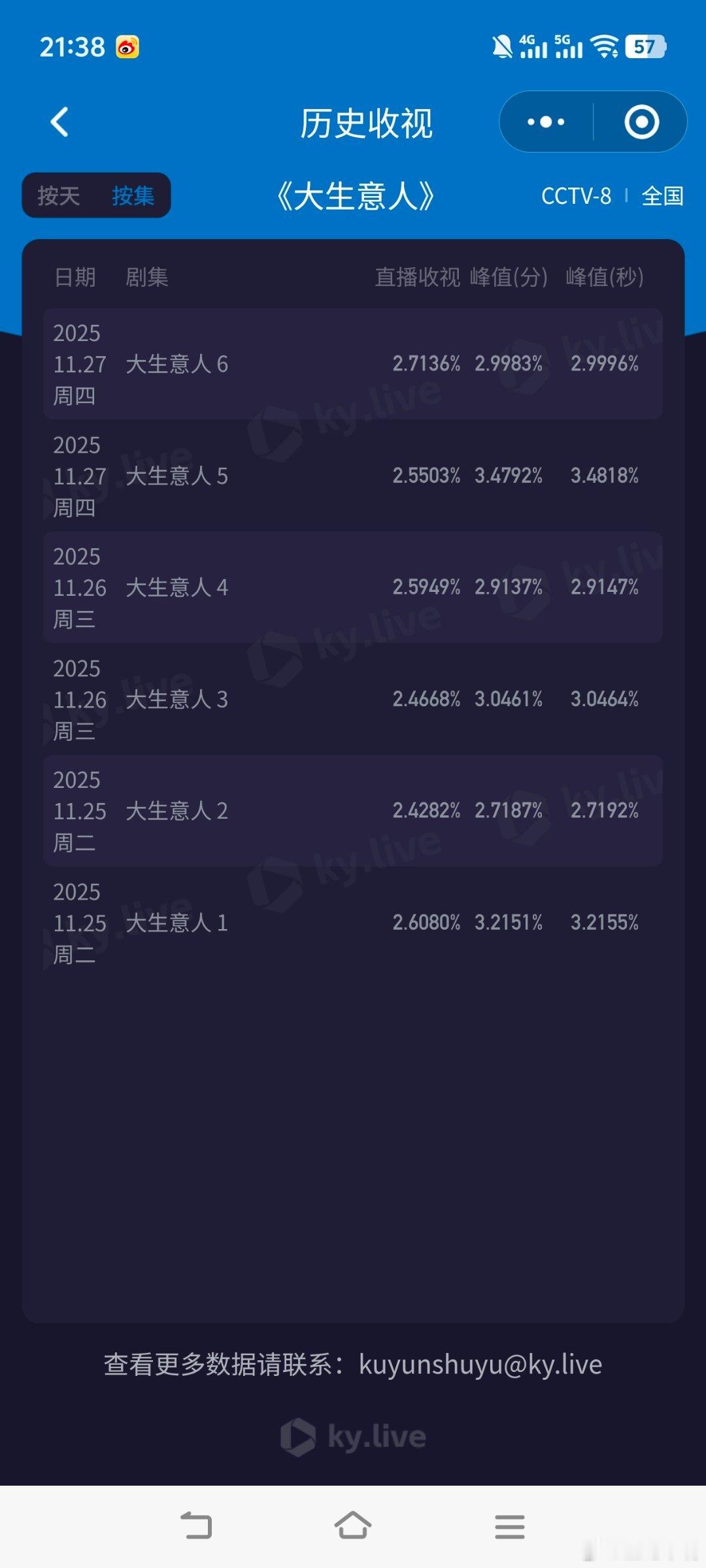 陈晓曾为了减肥狂喝咖啡陈晓《大生意人》开播第三天收视再创新高!!都说新剧看三天,三天已过,这几天每天都在涨,走势很乐观!有望冲年季!今晚峰值3.4818,平均2.6298!cvb估值2.6298×0.85=2.235