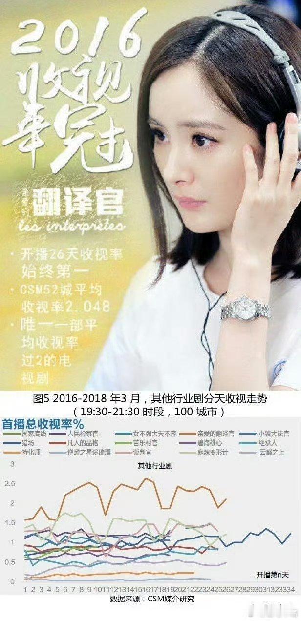 芒果史冠原来杨幂《亲爱的翻译官》的收视率不仅是2016年央卫年冠,网播还是芒果史