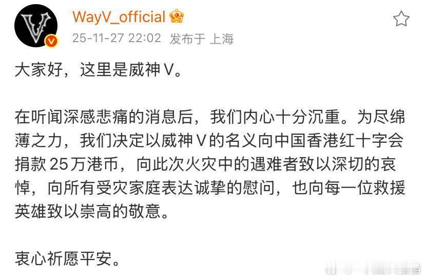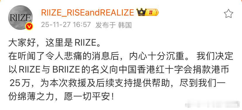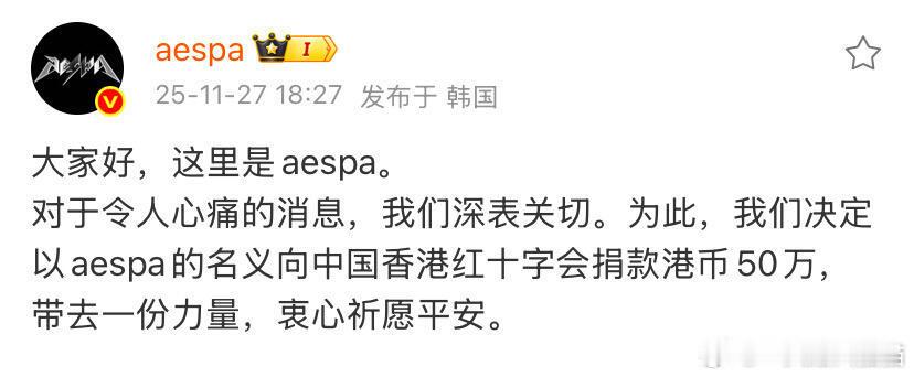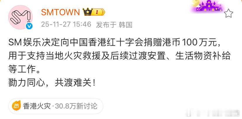 韩娱各公司香港火灾爱心捐款情况SM公司:港币100万元RIIZE:港币25万元AESPA:港币50万元Wayv:港币25万元