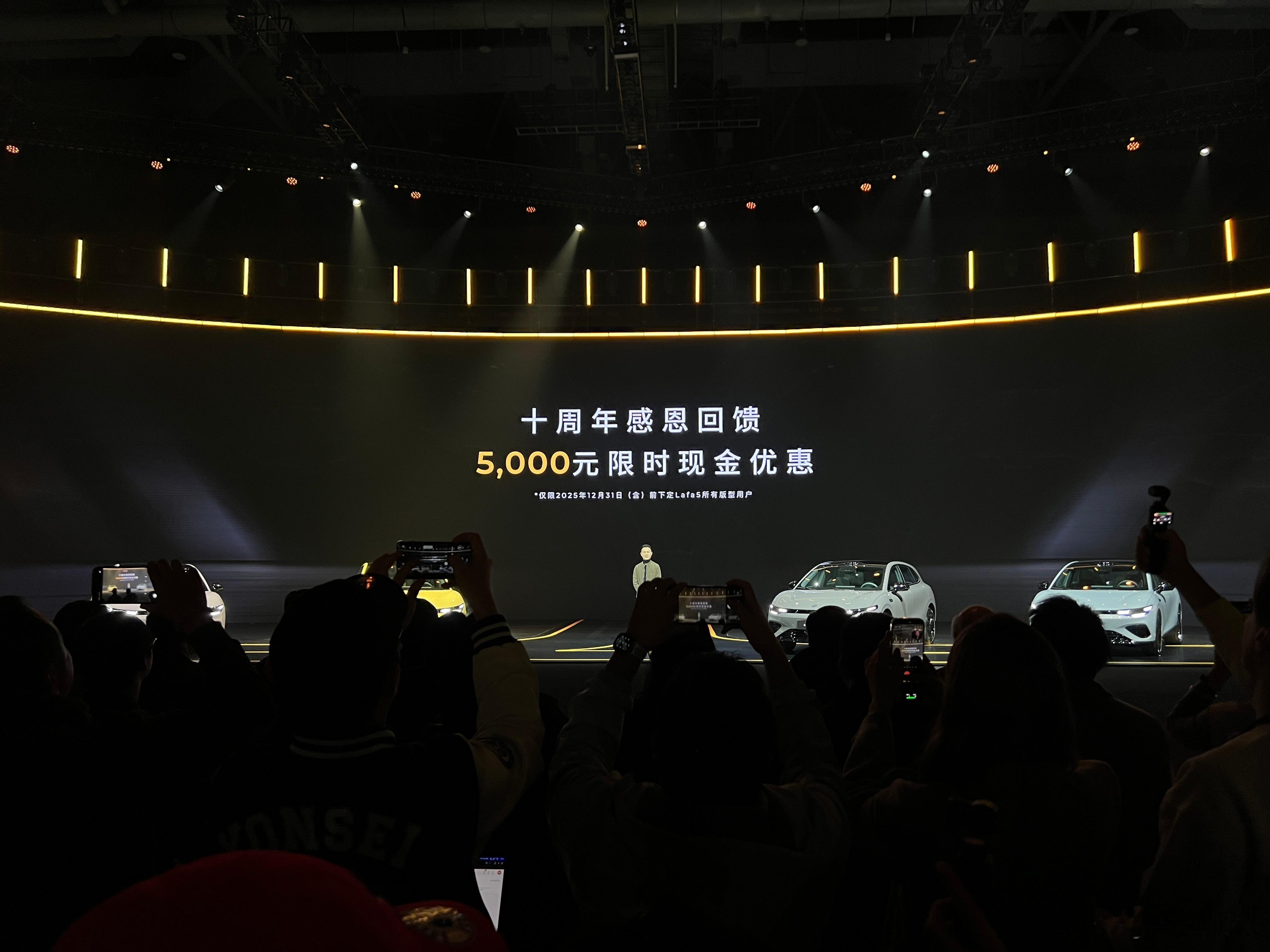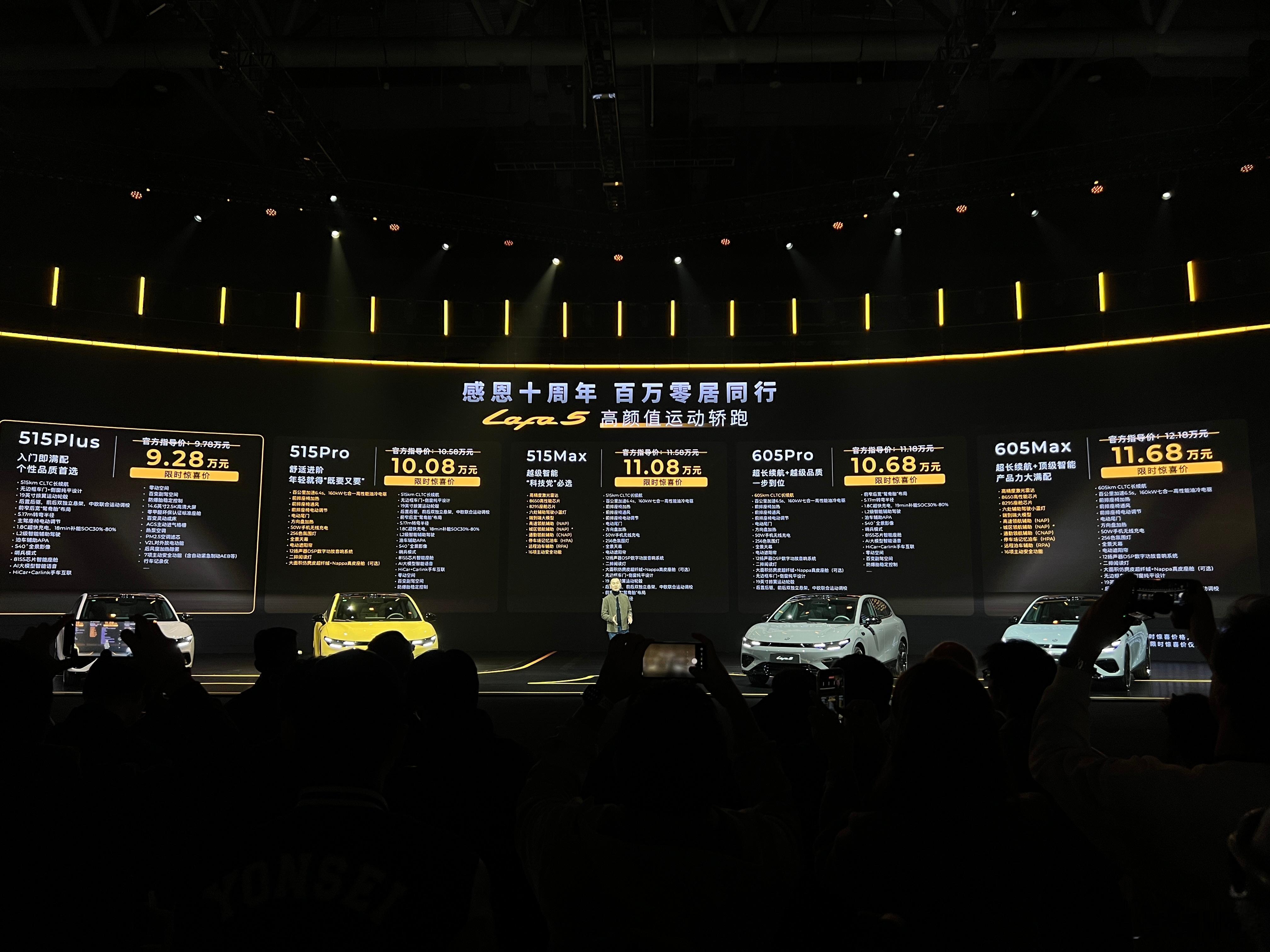 零跑lafa5正式售价来啦!不出所料,比预售价降了一大截官方指导价9.78-12.18万元叠加5千的零跑10周年限时现金补贴直接下探到9.28-11.68万元这价格你们觉得香不香?如果只想买来改装成纯电玩具的话10万块的515pro就很合适,218匹的动力座椅通风加热、电动尾门、带电动遮阳帘的全景天幕等等高价值的配置都齐备了如果想要智驾的话,可以直接上顶配605max零跑Lafa5开启轿跑10万级时代年轻人首选Lafa5限时9.28万起