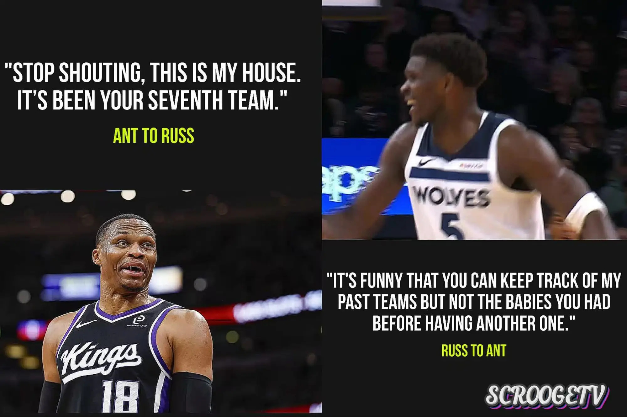 爱德华兹去惹威少干嘛?不知道威少的垃圾话是上过排行榜的吗?爱德华兹:“别嚷嚷了,这是我的主场。这已经是你待的第七支球队了。”威少:“真有意思,你能记住我待过的球队,却记不住你在又有一个孩子之前就有的那些孩子。”