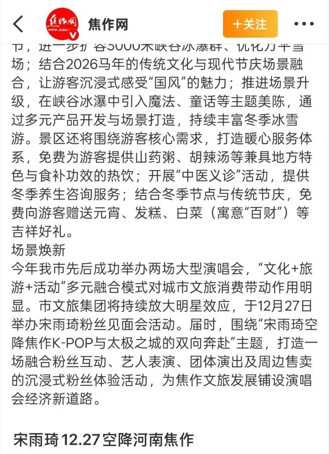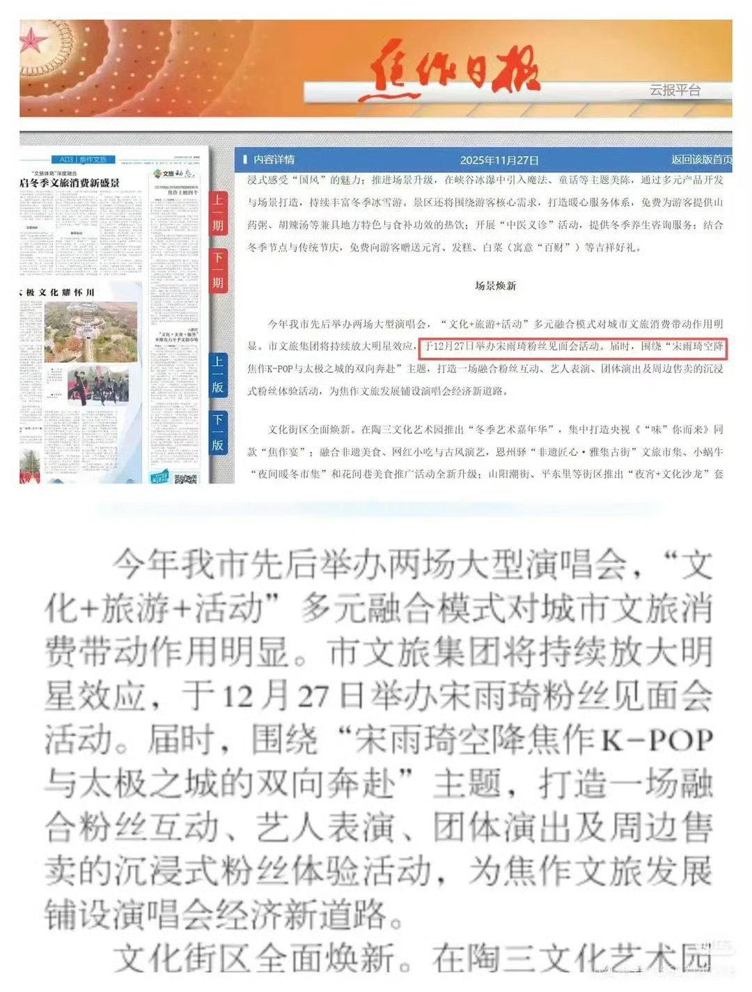 宋雨琦要在河南焦作表演了!这不一下子就到我家门口了欢迎雨琦来