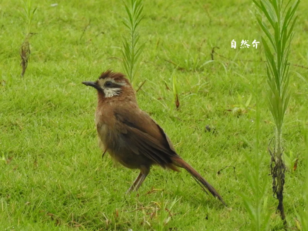 你家附近的灌丛,则生活着另外一大金刚。它们喜欢在灌丛中鬼鬼祟祟的窜来窜去。有时也会跳到草地上找吃的,或者停留在低矮的树枝上。它们也是贼大胆,你走得很近了,它们都毫不在乎,直到只有几米远了,才会扑腾起来,躲进灌丛或者低枝。这种鸟梳着朋克头,脸颊上的一圈白色羽毛很明显,有点像京剧小丑,有人说它像画眉,也叫它“土画眉”,但是,一唱歌就破功——它的歌喉远没有画眉的婉约动听,有时还会很吵。“白色脸颊的只会聒噪的假画眉”—— 没有比白颊噪鹛更贴切的名字了。