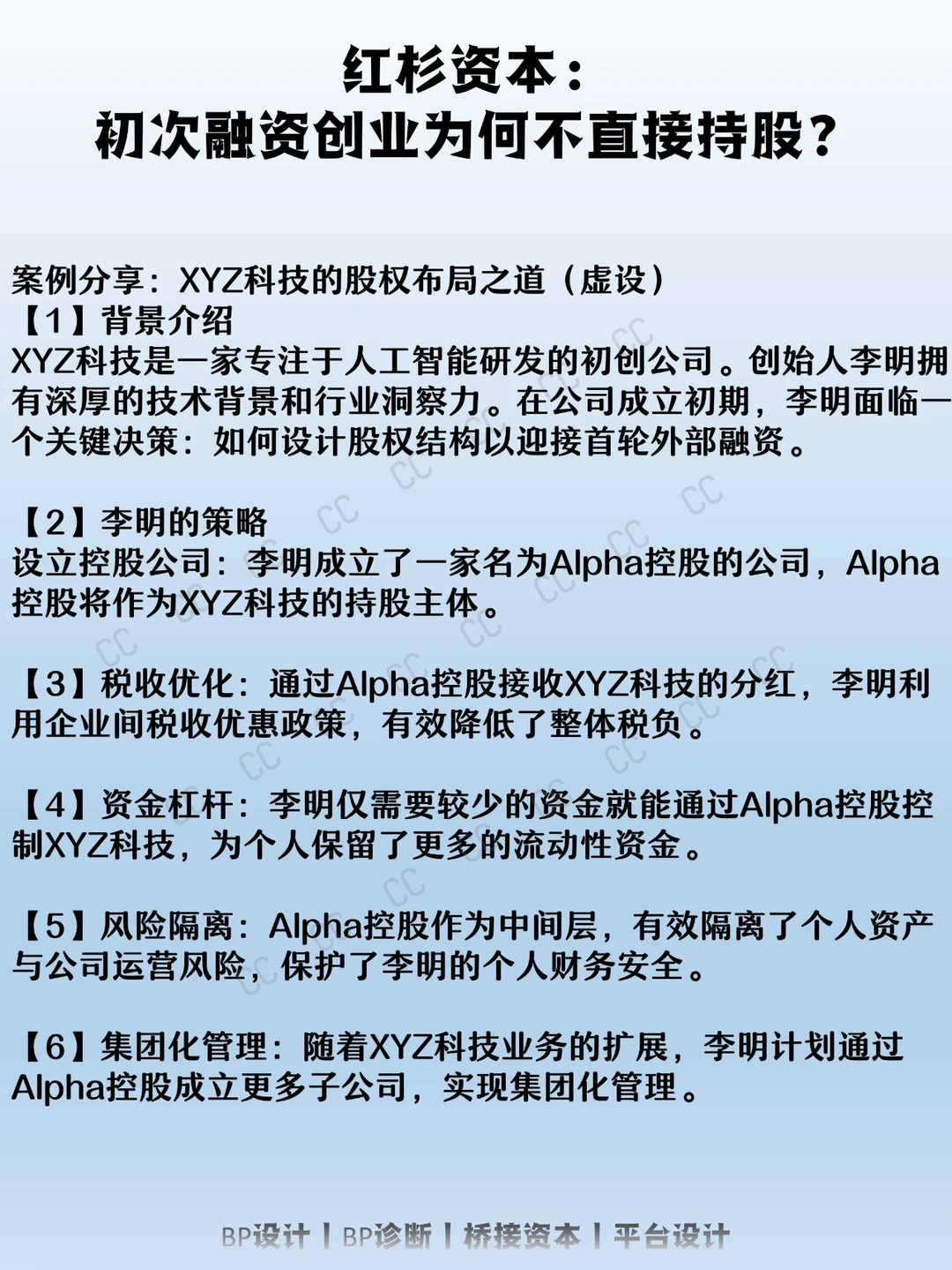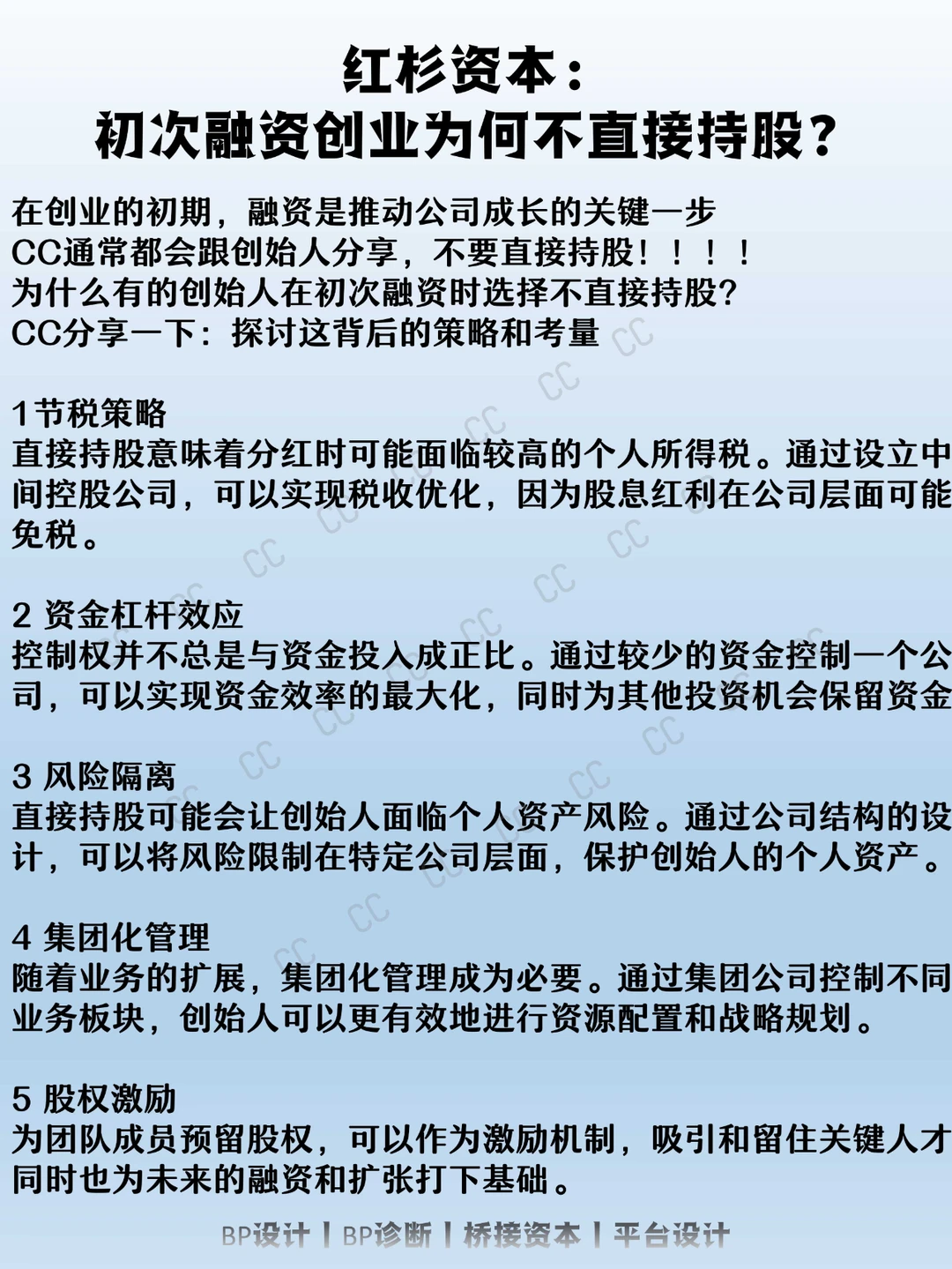 CC通常都会跟创始人分享,不要直接持股!!!!