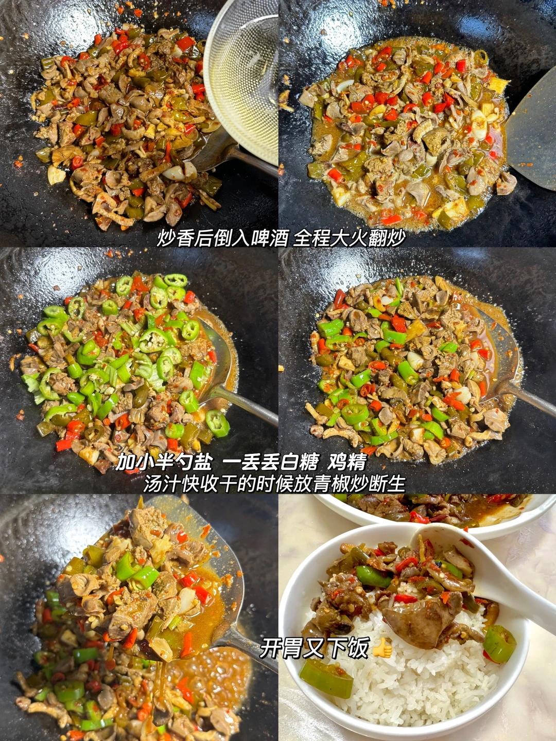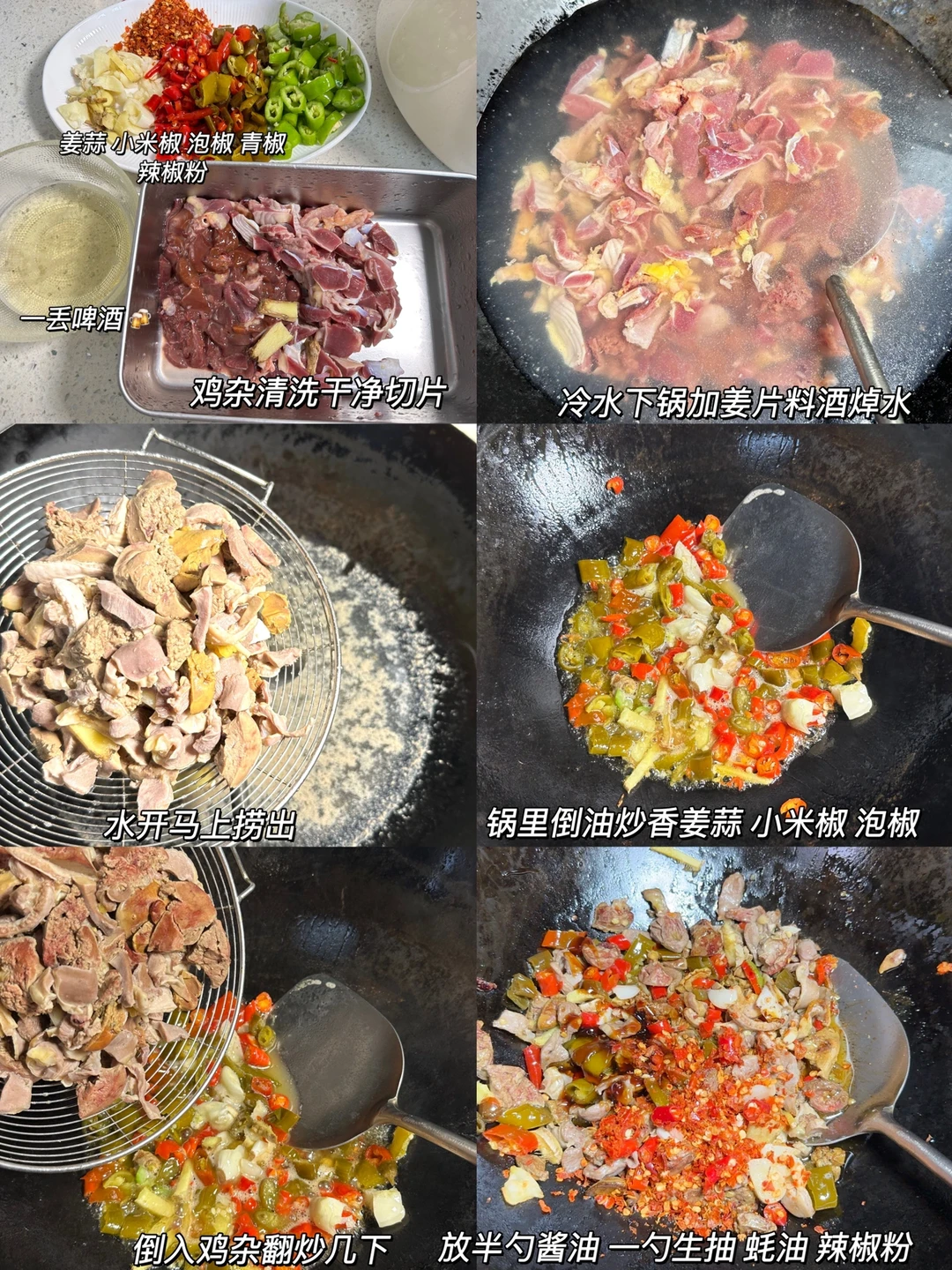 ✨食材:鸡杂(这里是四个 鸡胗 鸡心 鸡肝,肠也好吃啊 就是太难清理了 每次只能舍弃了)姜蒜粒 小米椒 泡椒 青椒 辣椒粉 啤酒