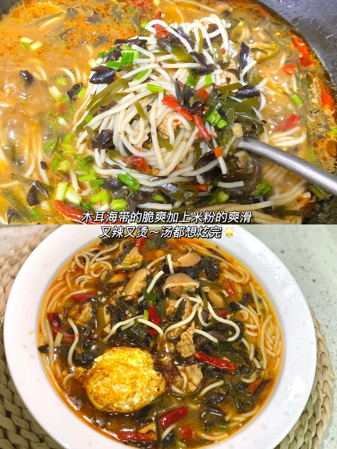 ✨食材:米粉 木耳 香菇 海带丝 瘦肉 干辣椒 辣椒粉 葱
