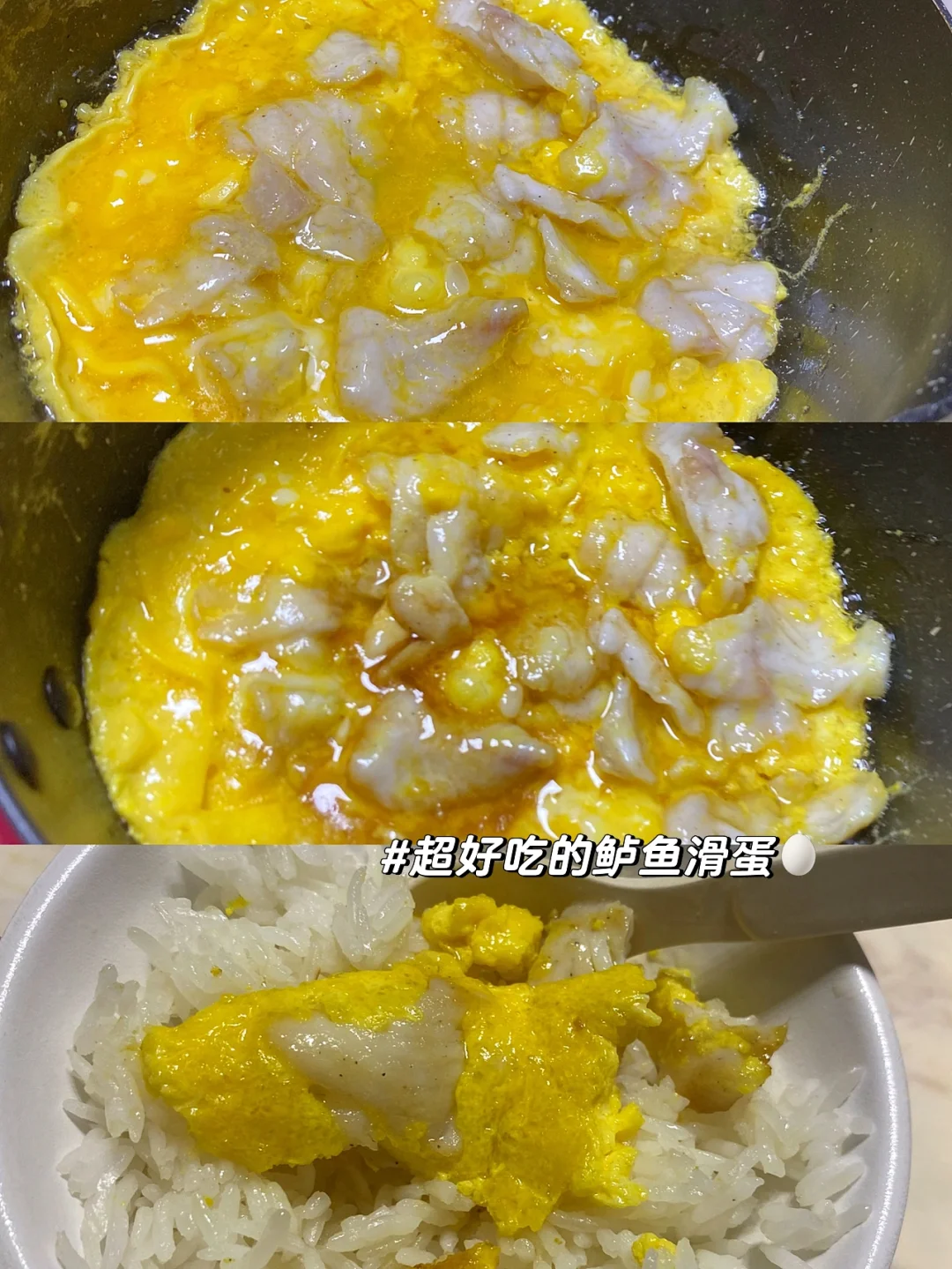 ✨食材:豆泡 青椒 小米椒 蒜末 1⃣️:豆泡用刀对半切开,蒜 小米椒 青椒切好备用。 热锅冷油放蒜末小米椒圈 炒香后放豆泡翻炒几下,再加一碗水 放两勺生抽/一勺蚝油/一滴酱油 一点点白糖 盐炒匀,小火煮四五分钟。 2⃣️:起锅前放两勺辣椒粉 (可忽略)青椒 一丢丢鸡粉,炒到青椒断生就可以起锅啦 豆泡咬下去会爆汁[萌萌哒R] 可以稍微多加些水 多煮一会更入味~ 鲈鱼片成片 鸡蛋液里加了水淀粉 超嫩滑[派对R] 好好吃饭呀🤘🏻