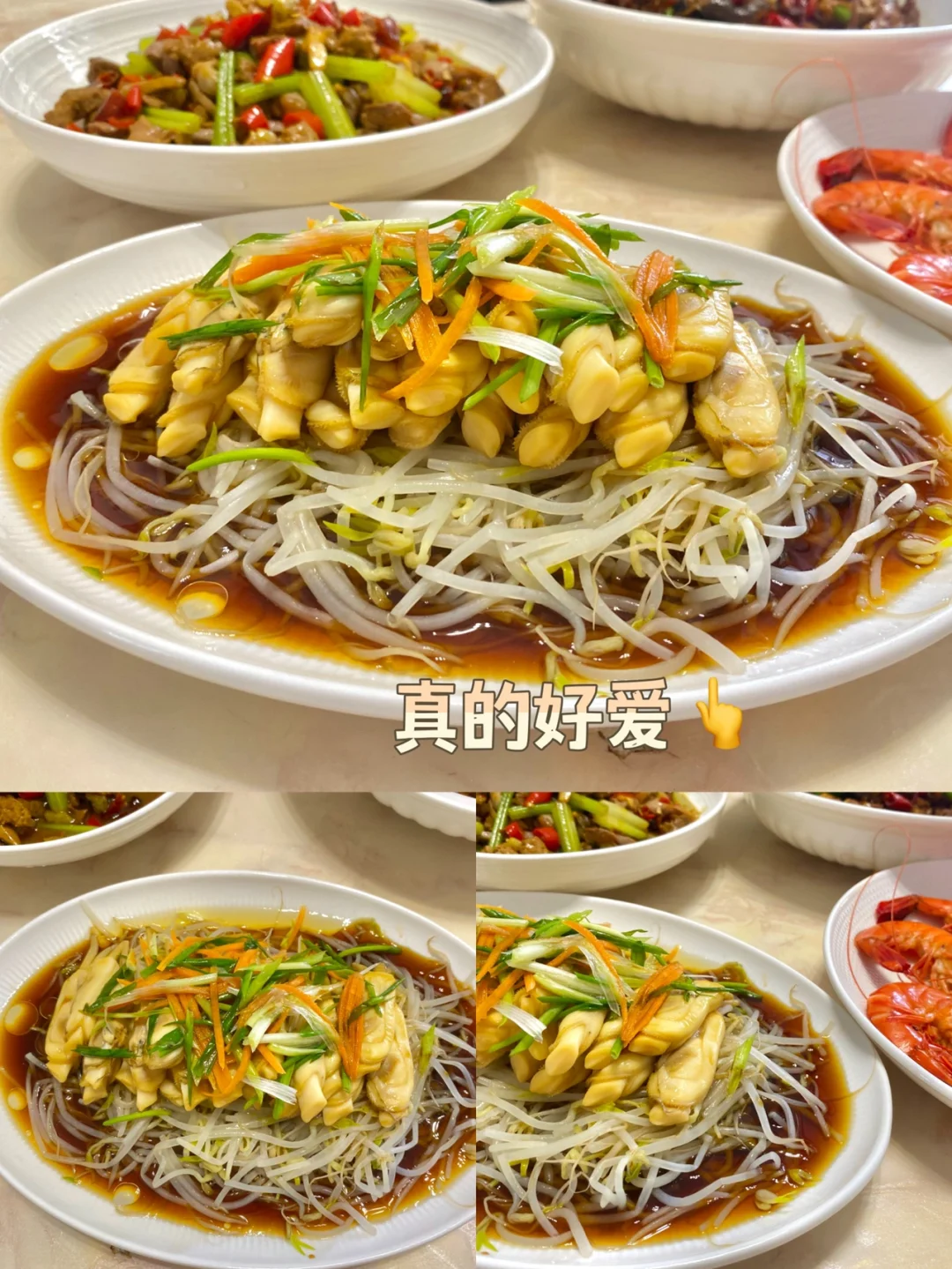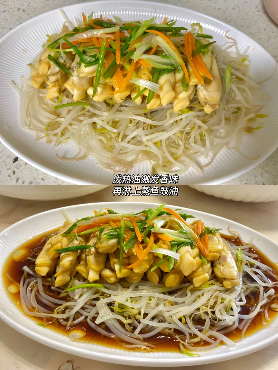 家常菜|葱油蛏子加上绿豆芽太搭了🔥