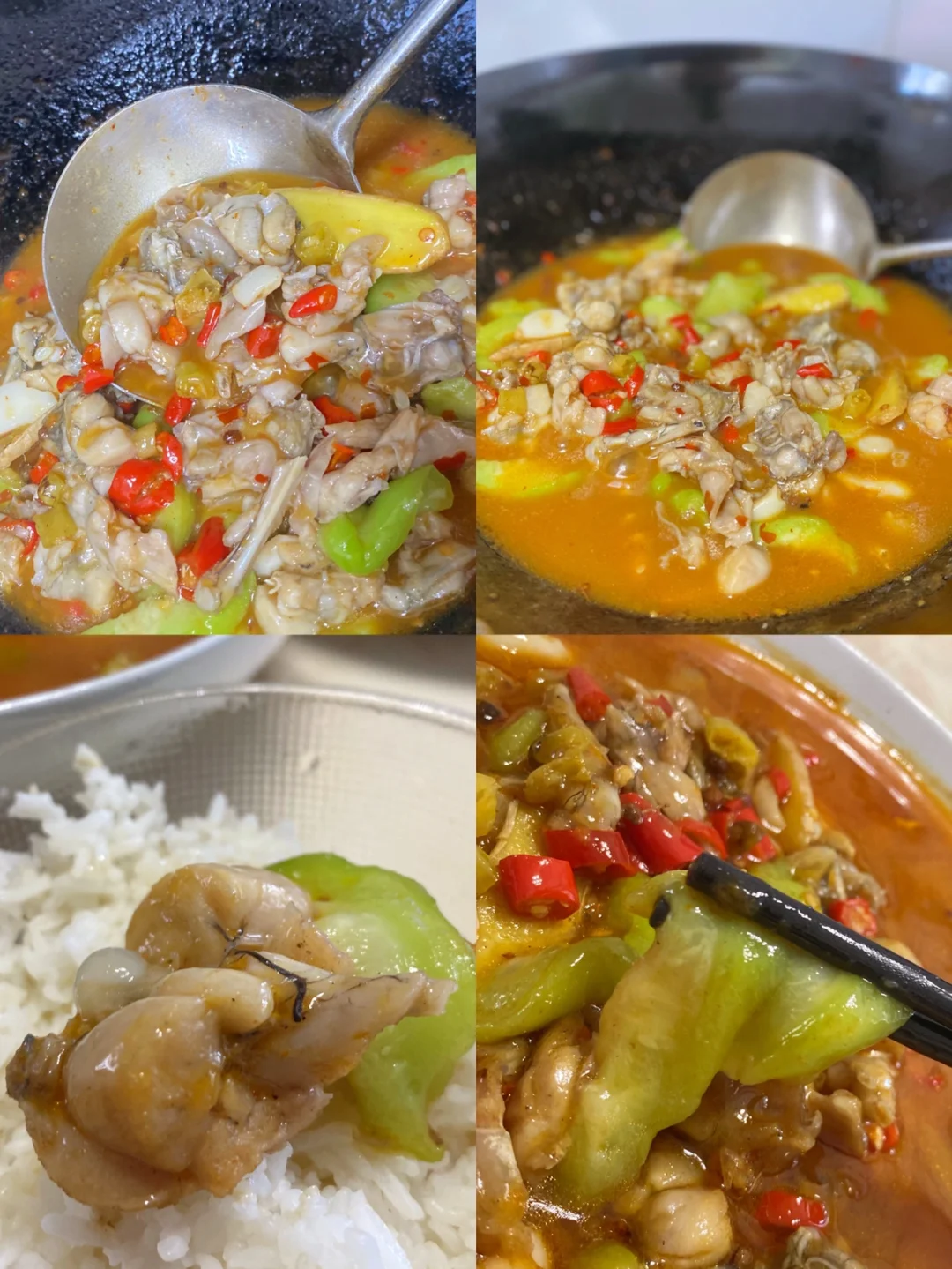 ✨食材:牛蛙 丝瓜 姜片 蒜粒 小米椒 泡椒 花椒 豆瓣酱