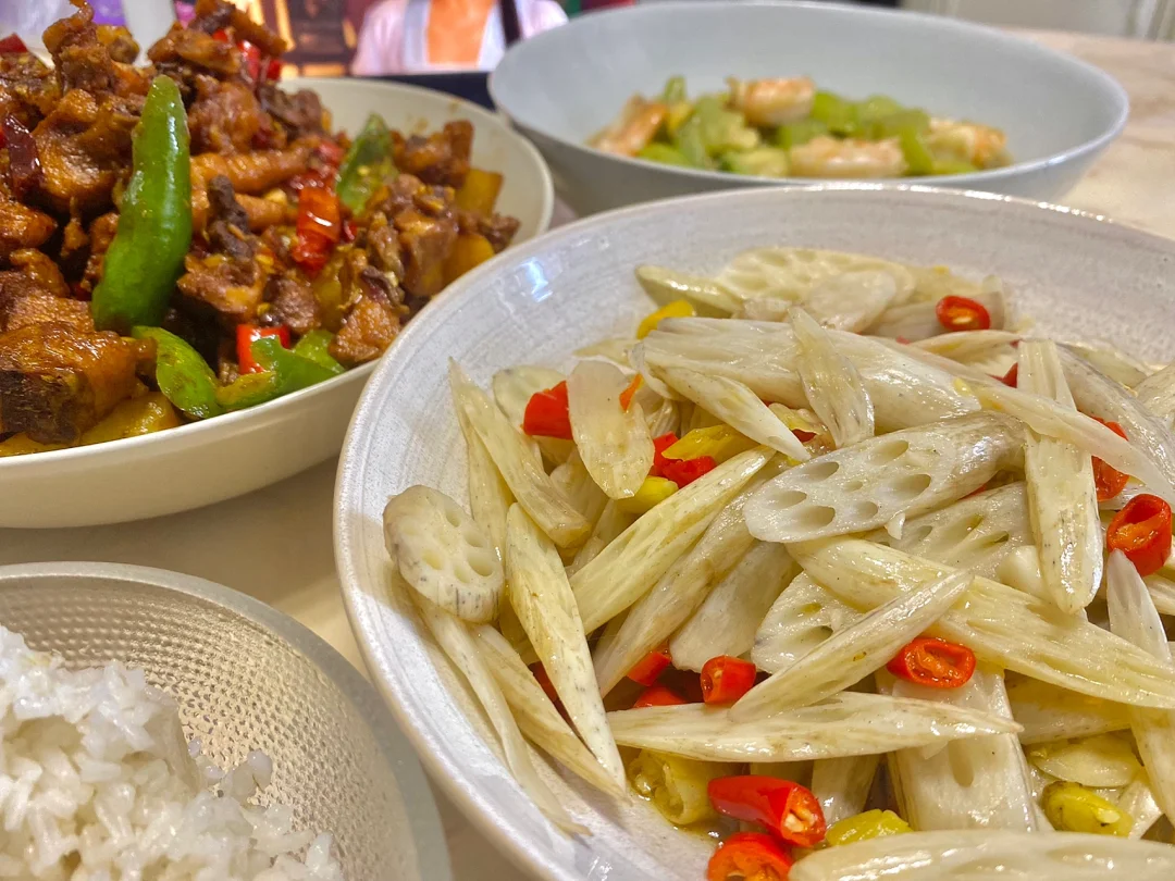 今日菜单:土豆🥔烧鸡 酸辣藕带 丝瓜虾仁🍤