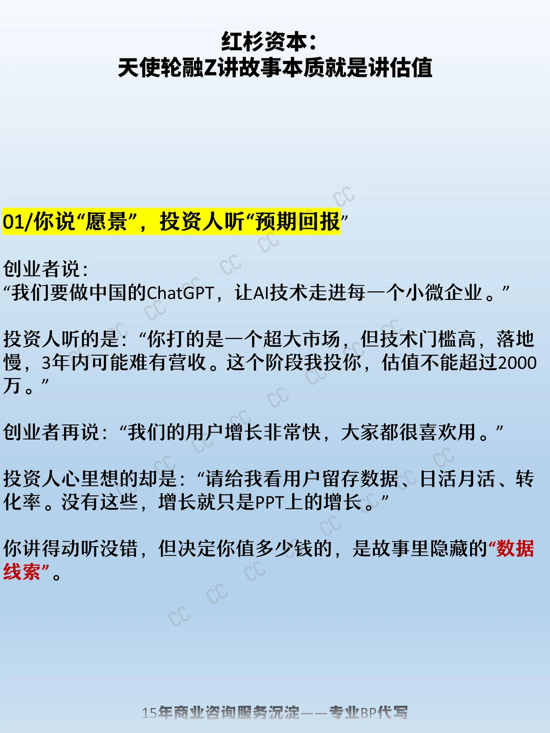 天使轮融Z,讲故事没错,但你得知道:你说的每一句话,投资人都在换算成“这个人值多少钱” 想拿到更高估值,别光说梦想,请把梦想拆成数据、节奏、动作,然后打包成“未来可兑现的价值”