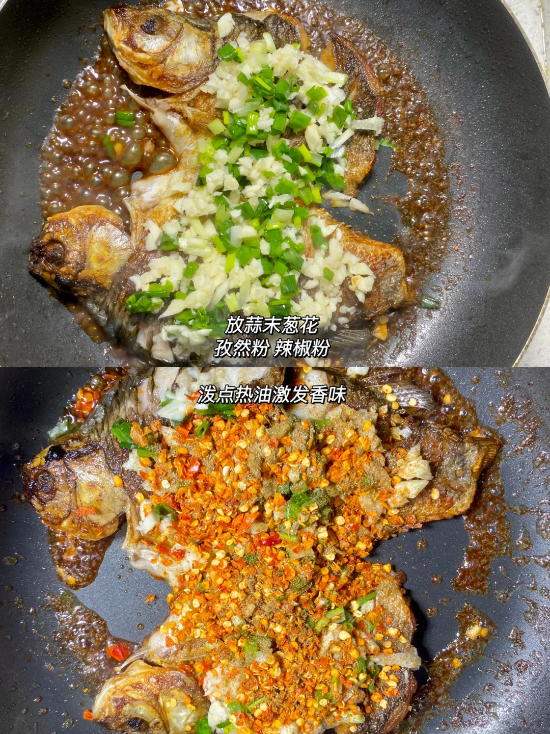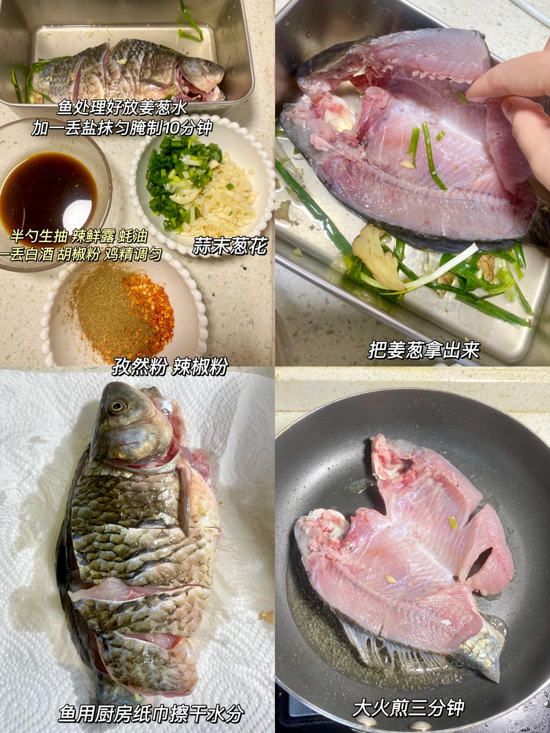 ✨食材:鲫鱼 (半斤左右的)姜 葱 蒜 🧄 辣椒粉 孜然粉 盐🧂