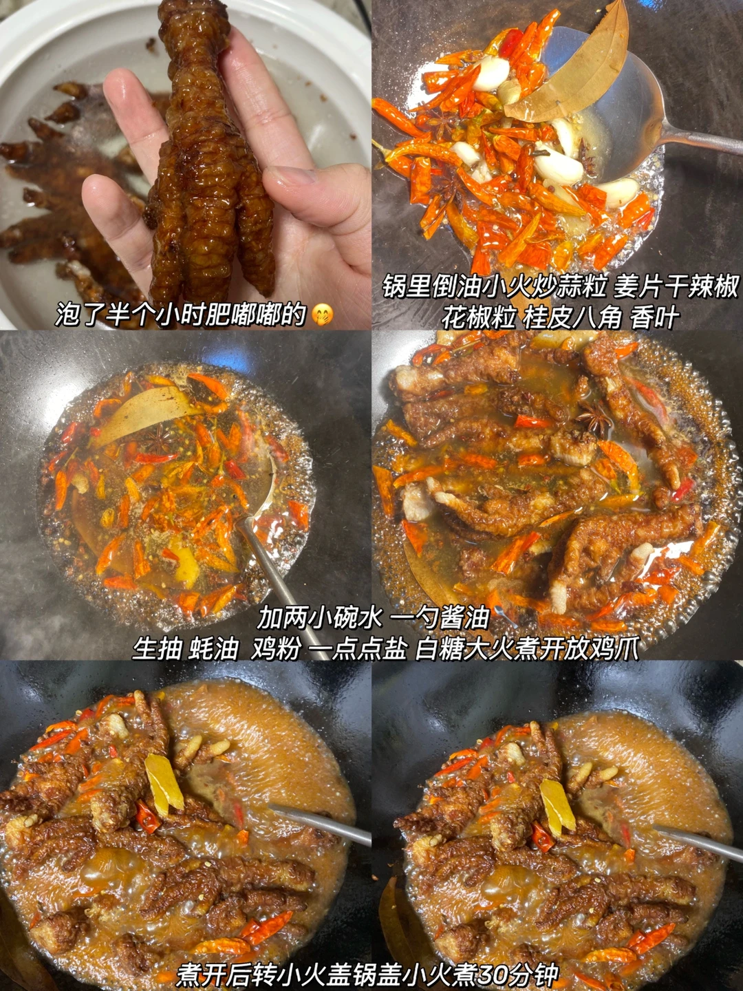 2⃣️:锅里倒油烧热 放鸡爪 马上盖上锅盖,中大火炸5分钟左右 关火 稍微冷却一会,再开锅盖夹出来泡半小时冷水。泡完的鸡爪肥嘟嘟的[偷笑R]