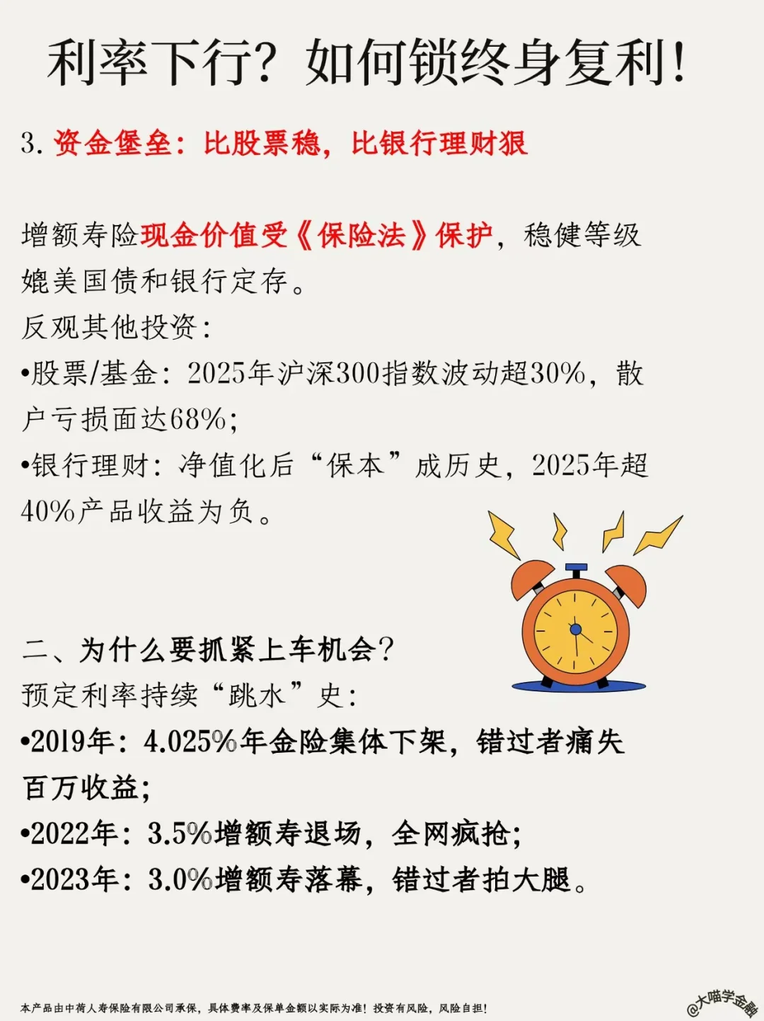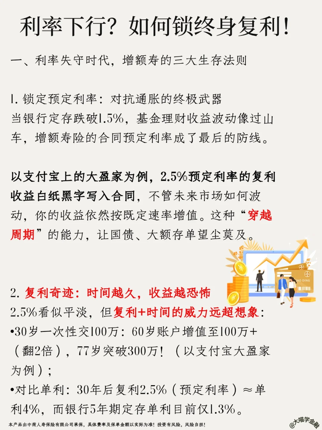 ✨复利2.5%(预定利率)≈30年后单利4%,远超银行定存!