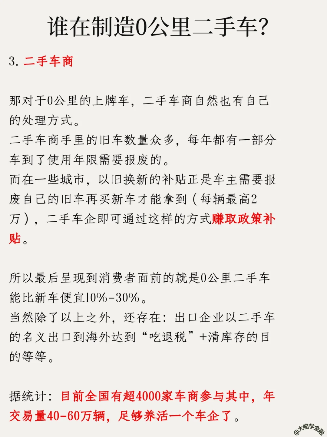 3⃣ 二手车商:借“以旧换新”政策套补贴(每台最高薅2万),还能吃退税+清库存