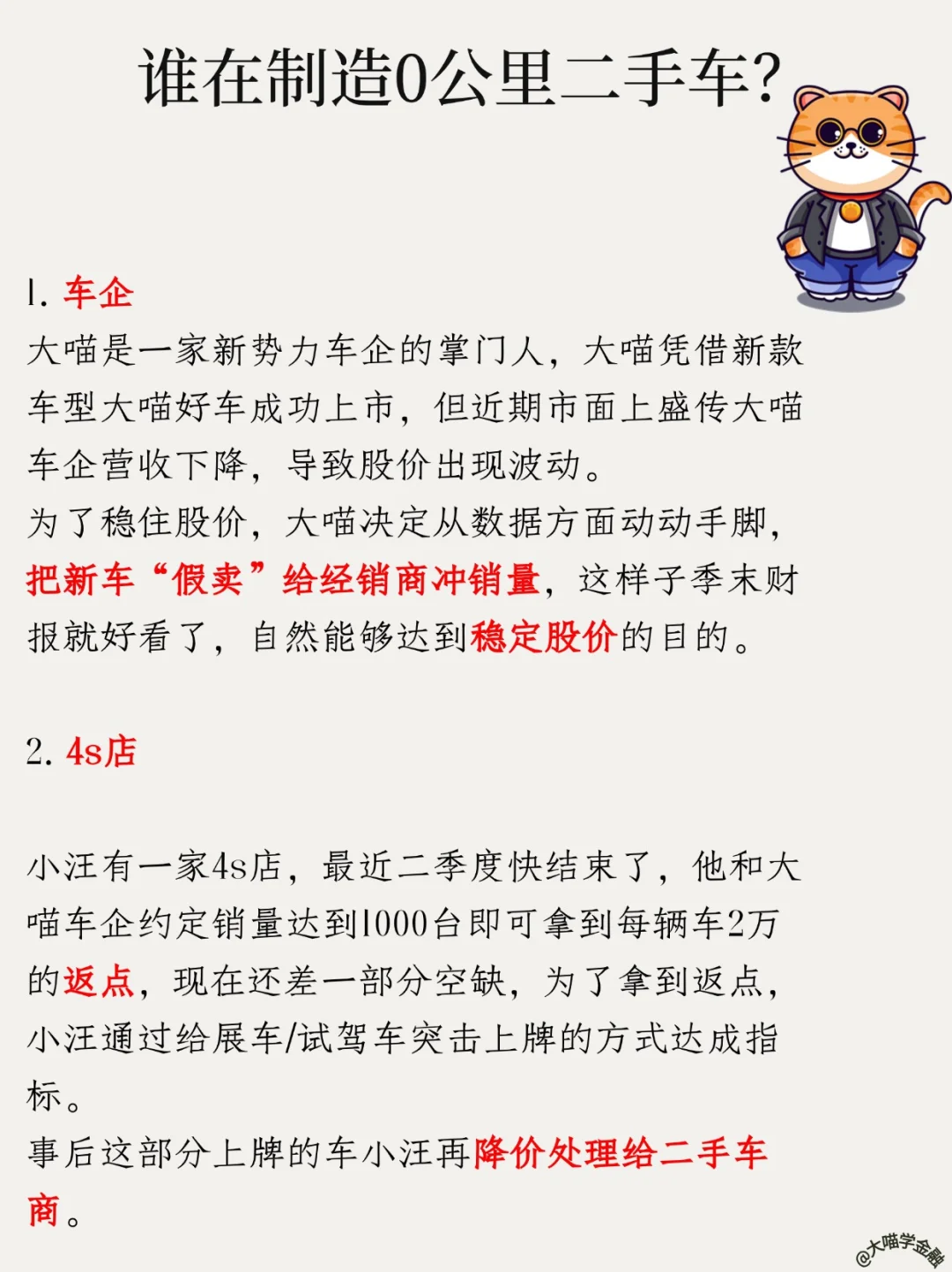1⃣ 车企:为冲财报数据📈,把新车“假卖”给经销商,股价稳了库存清了,表面风光无限~