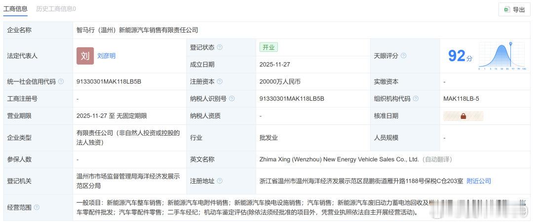 【爱车安全贴士 成立新公司,这一“复活”造车新势力最新进展!】最近这些“复活”造车新势力的消息一波接一波。天眼查App显示,11月27日,智马行(温州)新能源汽车销售有限责任公司成立,注册资本2亿人民币。公司经营范围包括新能源汽车整车销售、新能源汽车电附件销售、新能源汽车换电设施销售、汽车销售等。股东信息显示,该公司由威马汽车制造温州有限公司全资持股网页链接