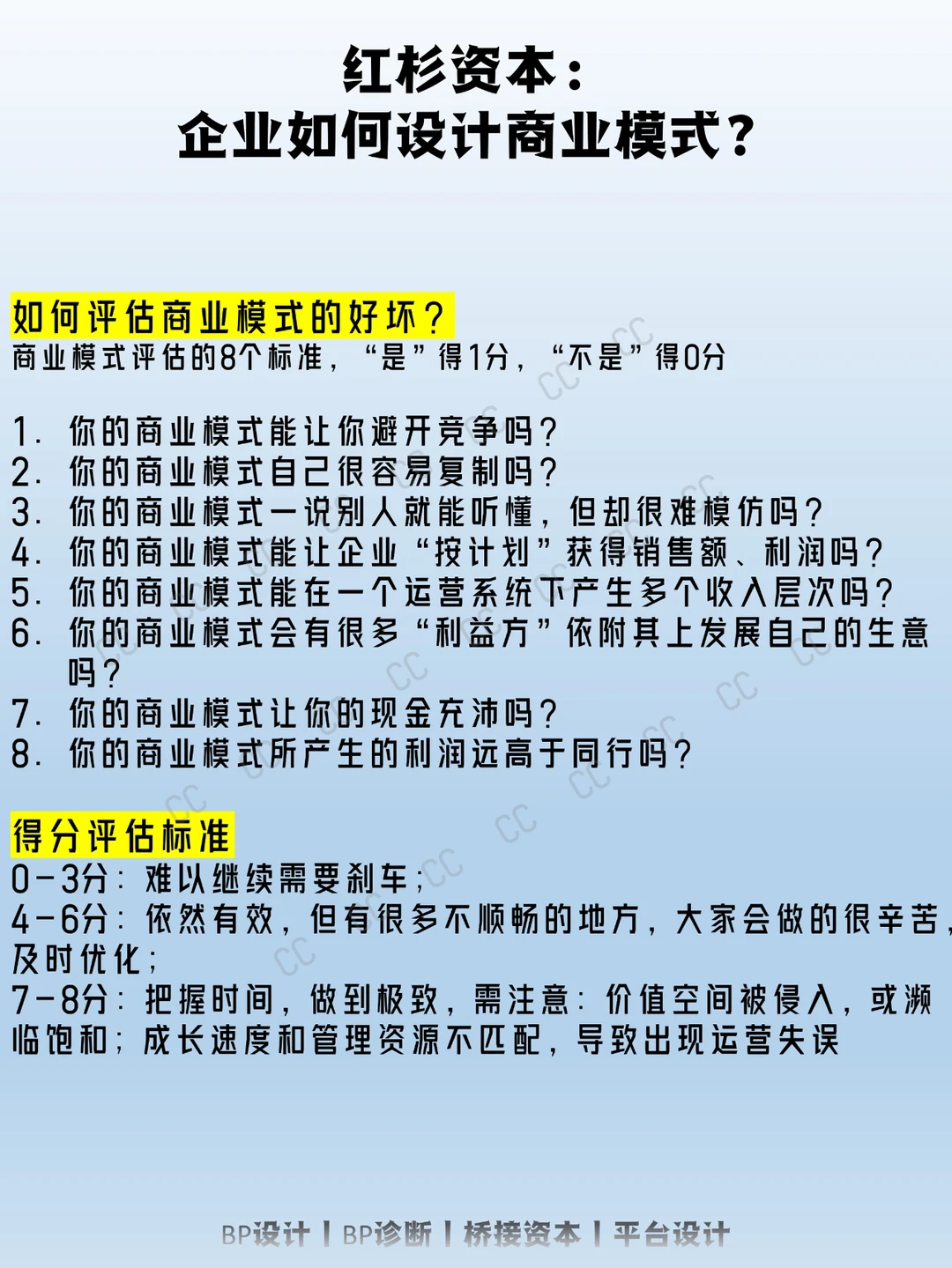商业模式评估的8个标准,“是”得1分,“不是”得0分