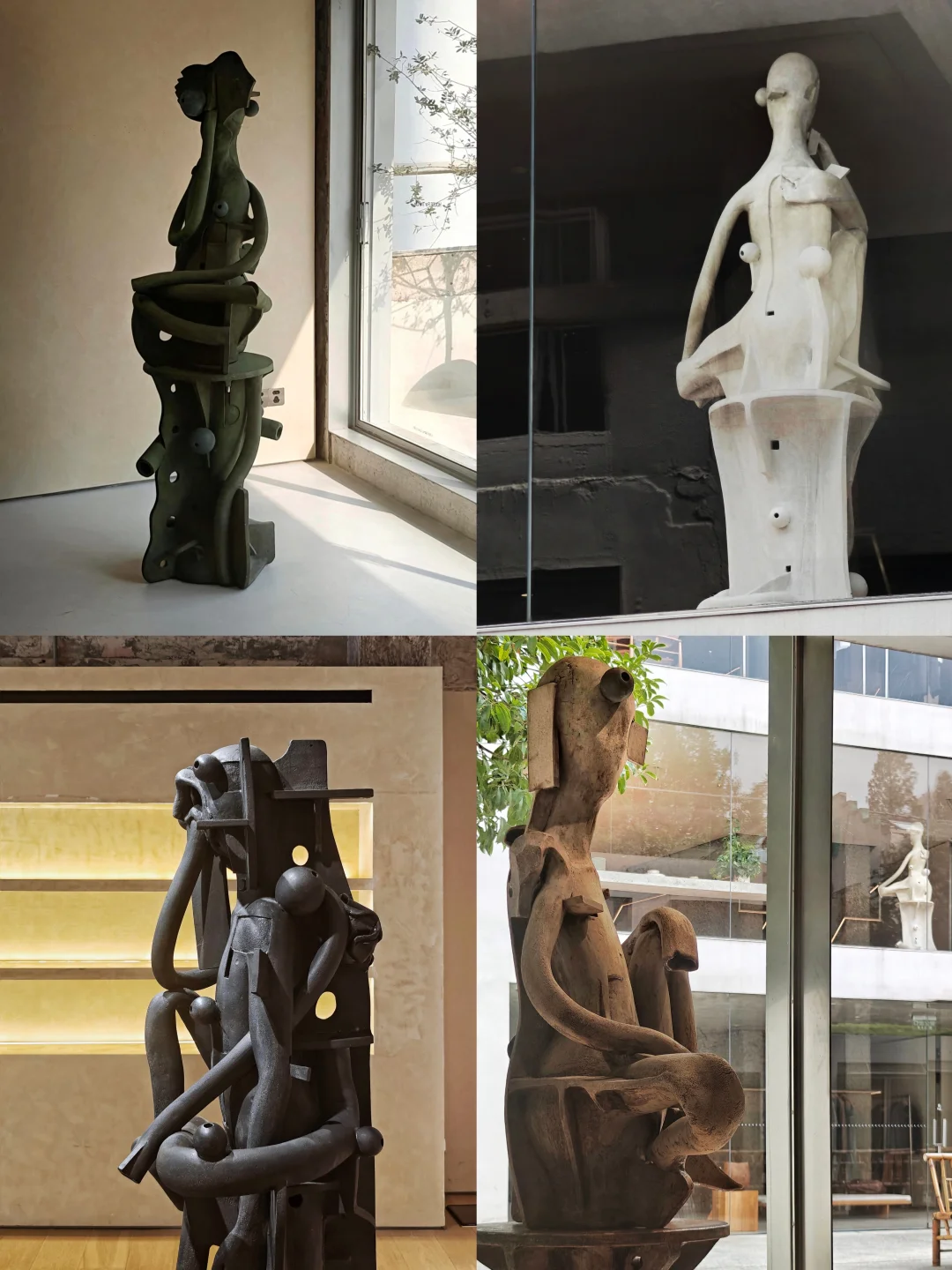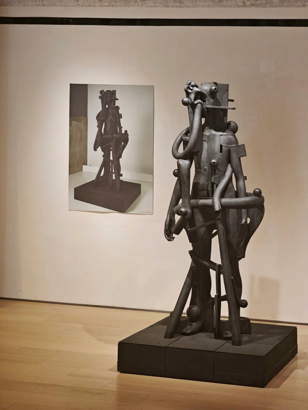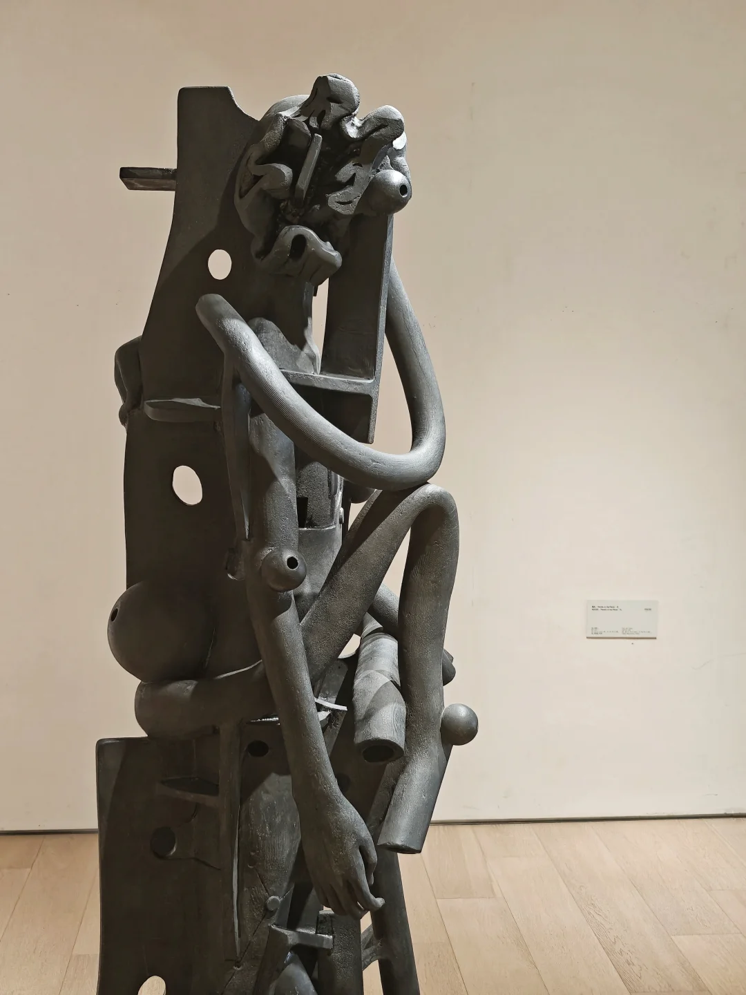 他通过零件、意象组合,加入类似筋骨的构造,让中心“人形”有了和世界、宇宙关联的生命意义。
