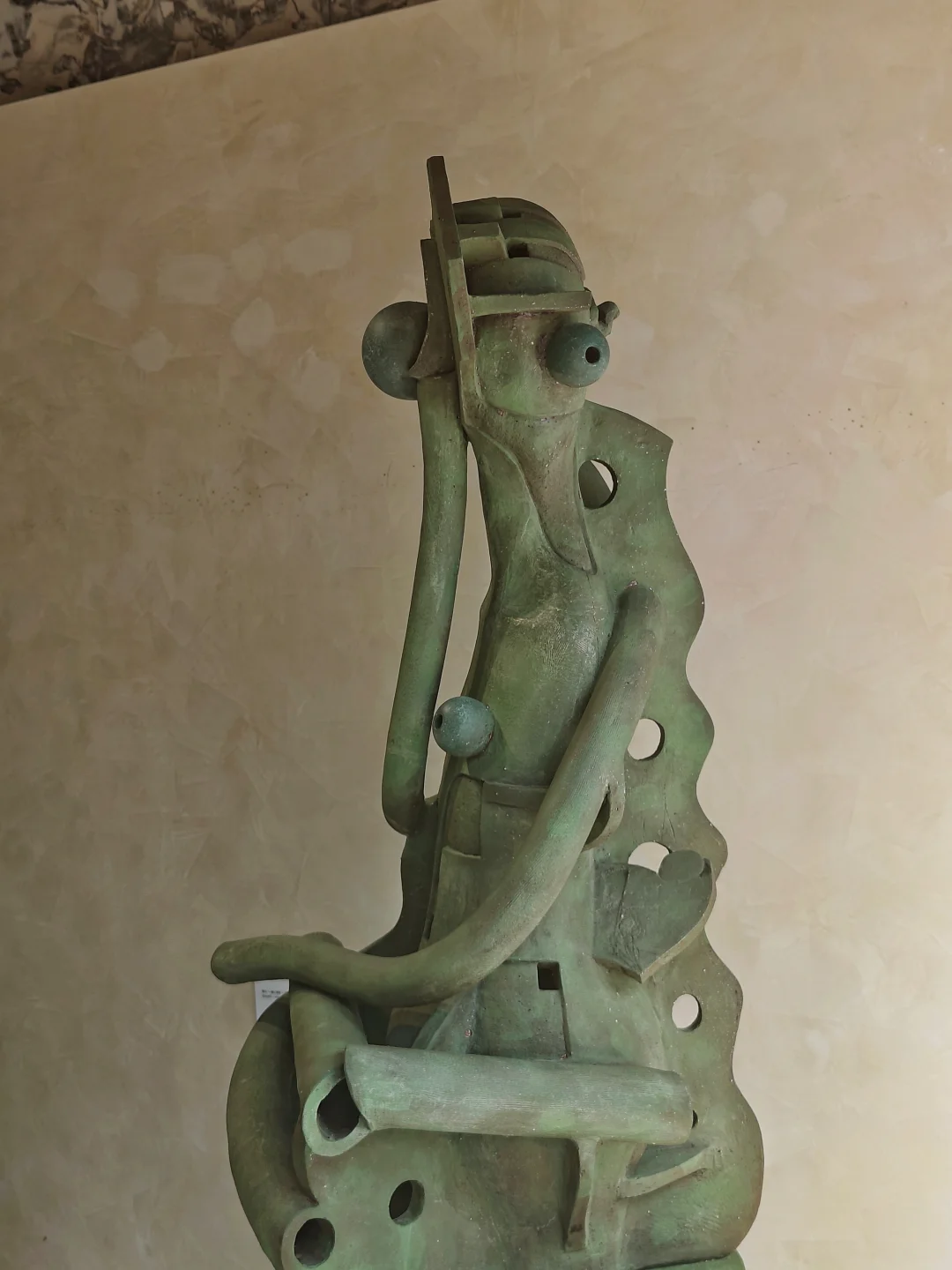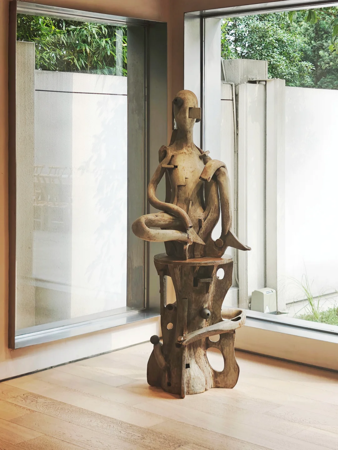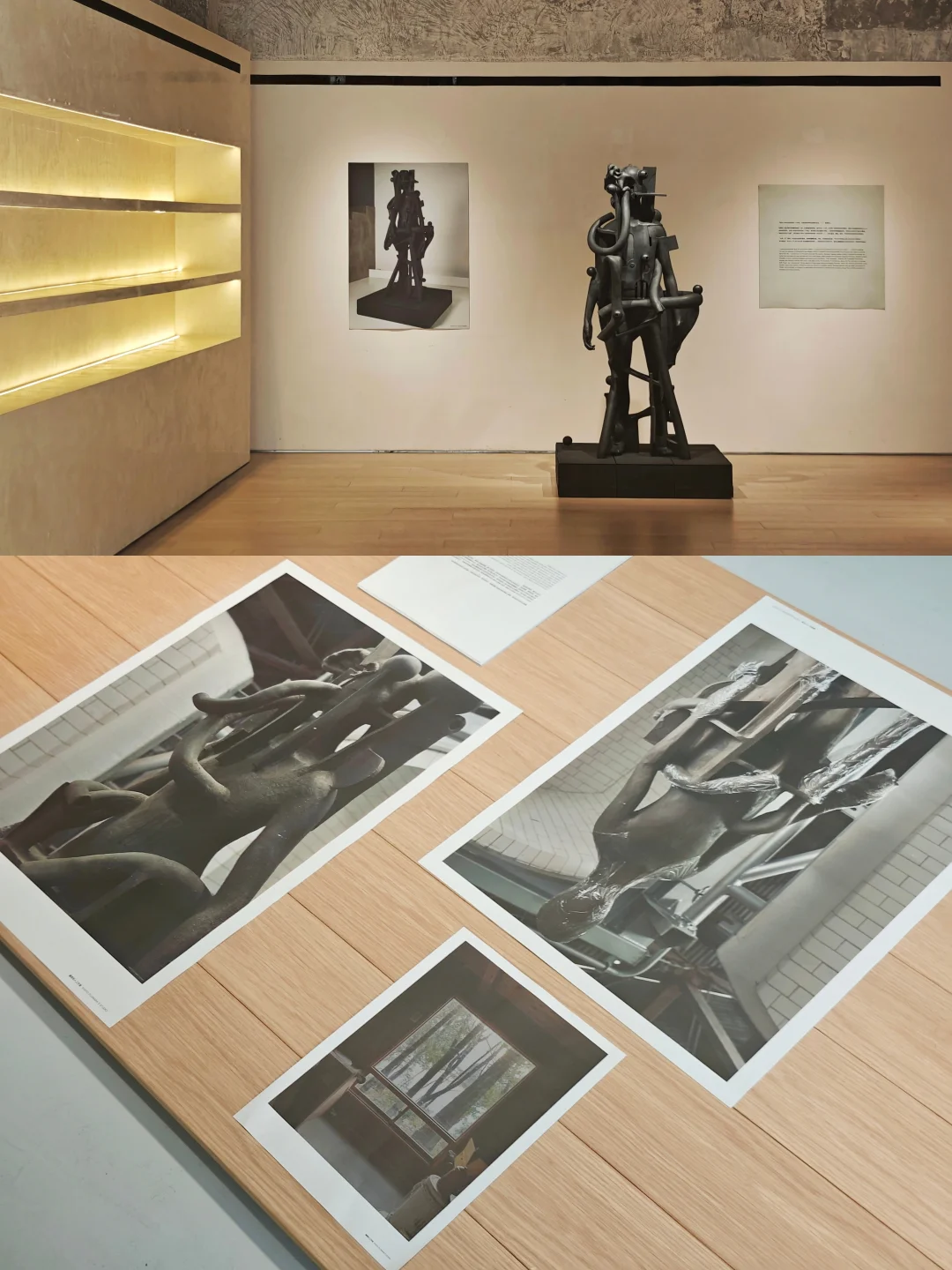 他通过零件、意象组合,加入类似筋骨的构造,让中心“人形”有了和世界、宇宙关联的生命意义。
