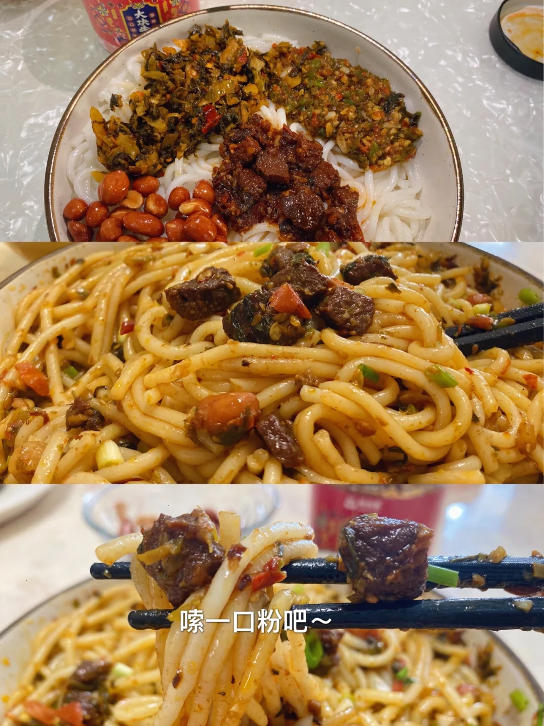 ✨食材:米粉 酸菜 花生米 辣椒酱 牛肉酱