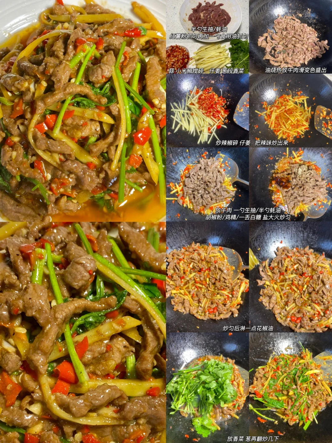 我的美食日记 笔记灵感 1⃣️:仔姜牛肉丝 脆口的姜丝加上嫩滑的牛肉 香辣过瘾 2⃣️:江西麻辣鸭 我妈的拿手菜[偷笑R]汤汁捞饭真的棒👍 3⃣️:凉拌鲫鱼 这个我真的好爱 就是韭菜吃完要多漱口 4⃣️:香辣猪蹄 强推这个做法!! 5⃣️:麻辣干煸牛肉 麻辣有嚼劲,干香口味的 6⃣️:姜葱鲈鱼 外酥里嫩,一点都不腥!我家队友不爱吃鱼,这个做法他都有点停不下来[色色R]
