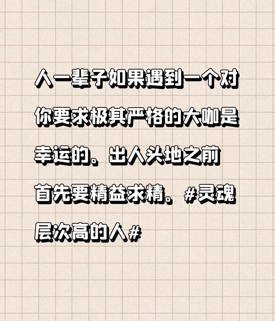 人一辈子如果遇到一个对你要求极其严格的大咖是幸运的。出人头地之前首先要精益求精。
