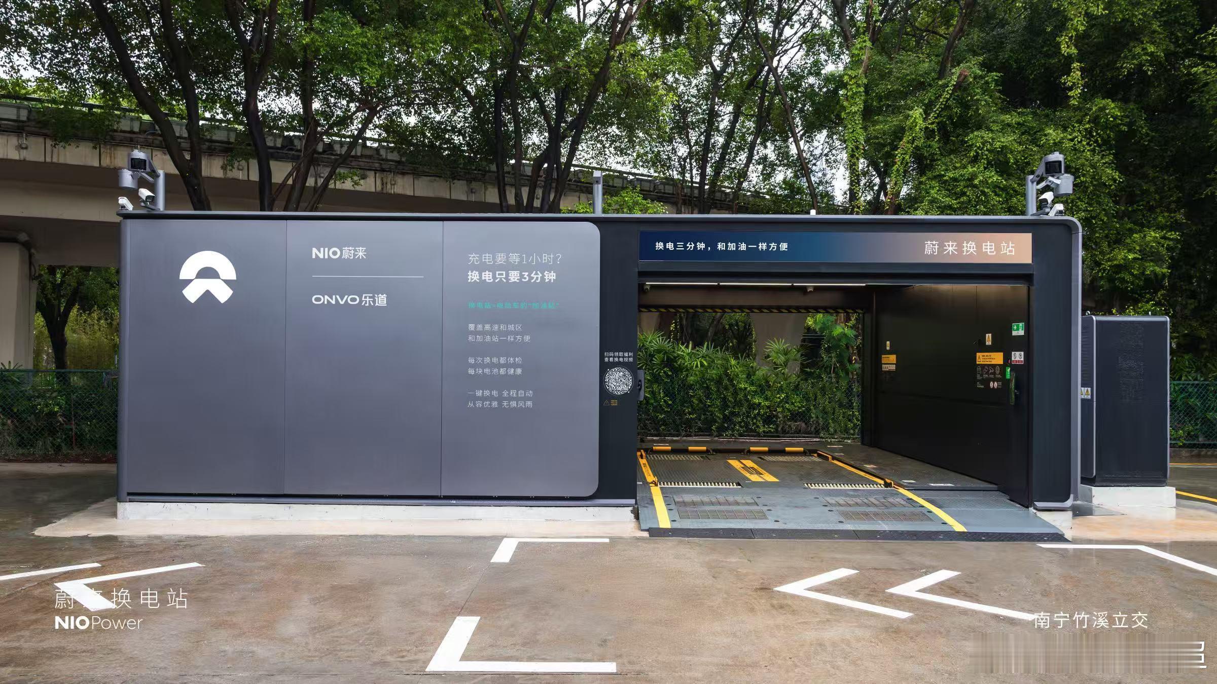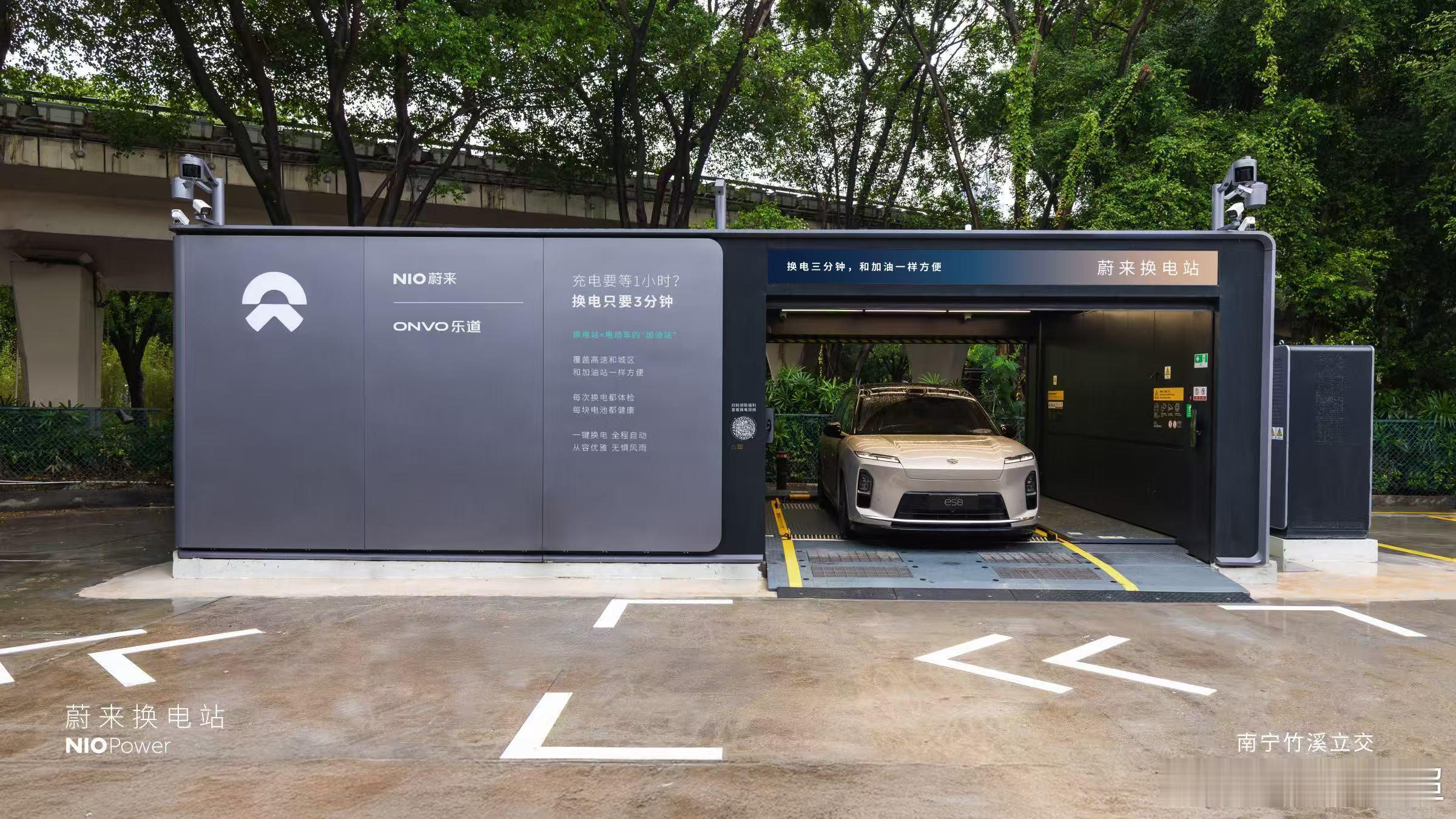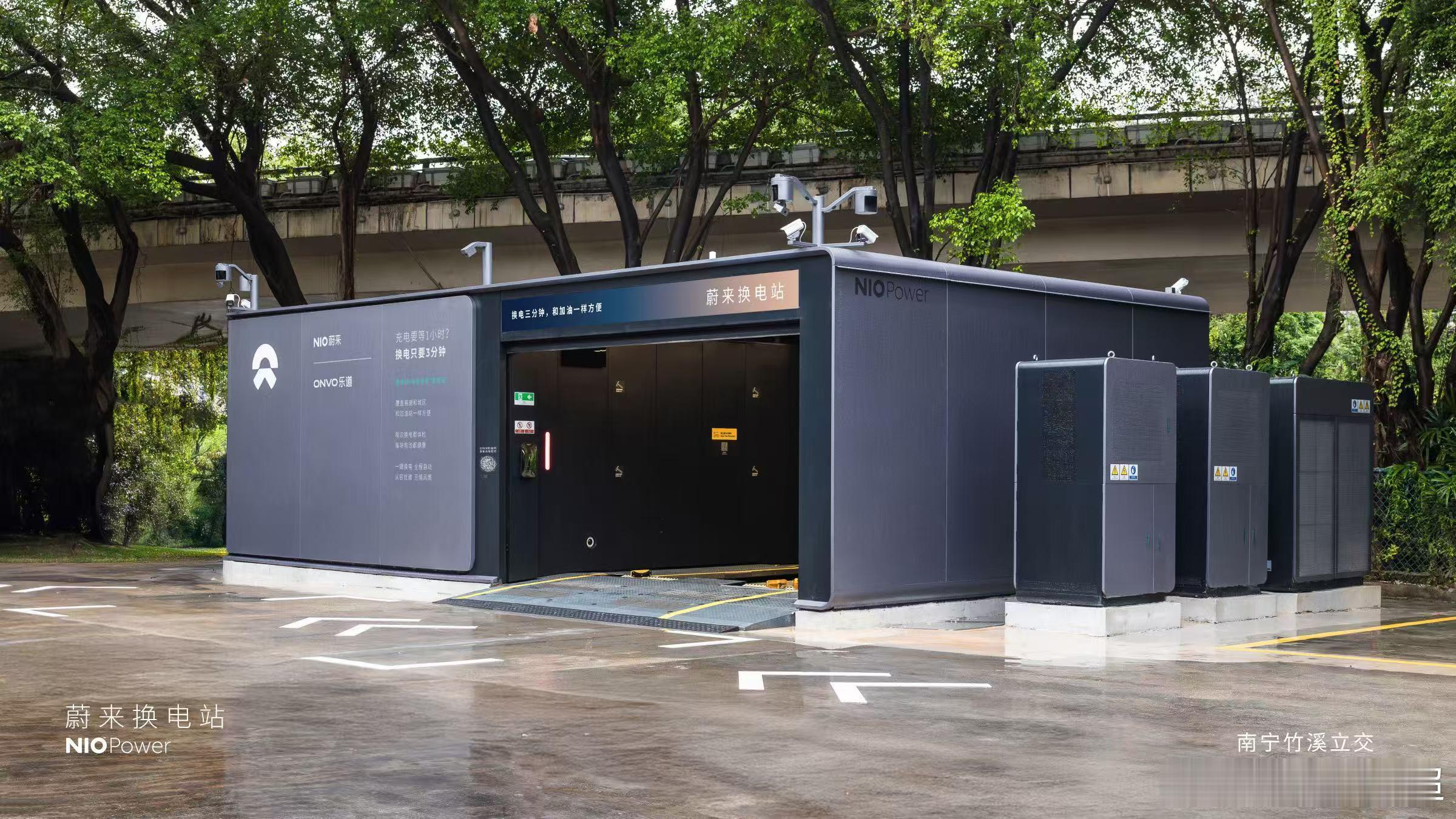 蔚来换电站 | 南宁竹溪立交 焕新上线截止2025年11月22日,NIO Power广西区域已上线54座换电站,其中高速换电站26座站。充电站105座,充电桩563根,覆盖39个区县。
