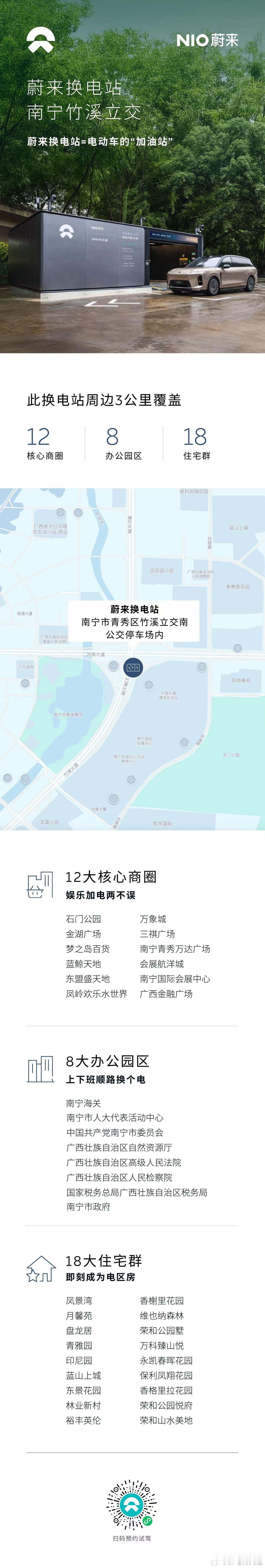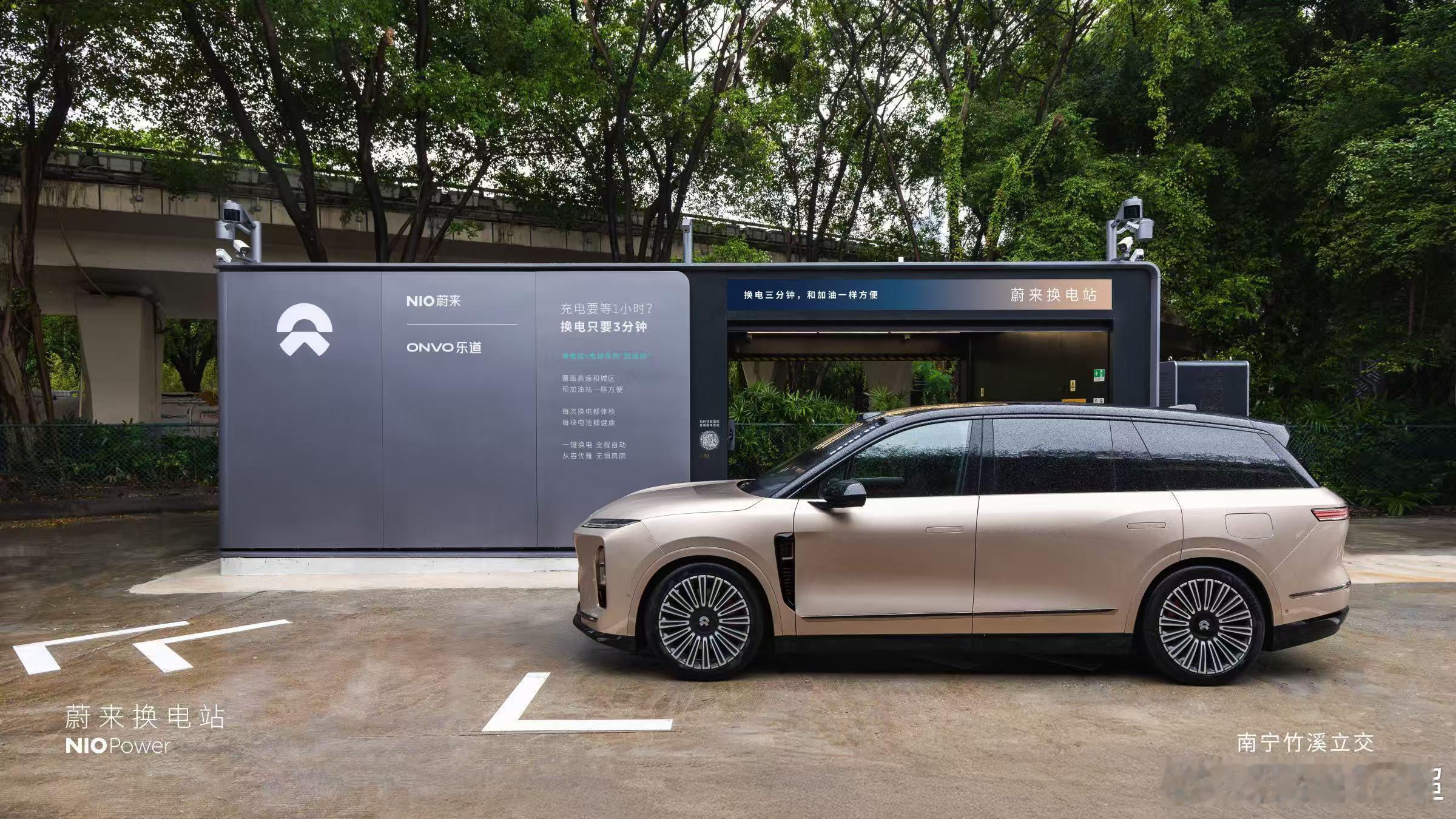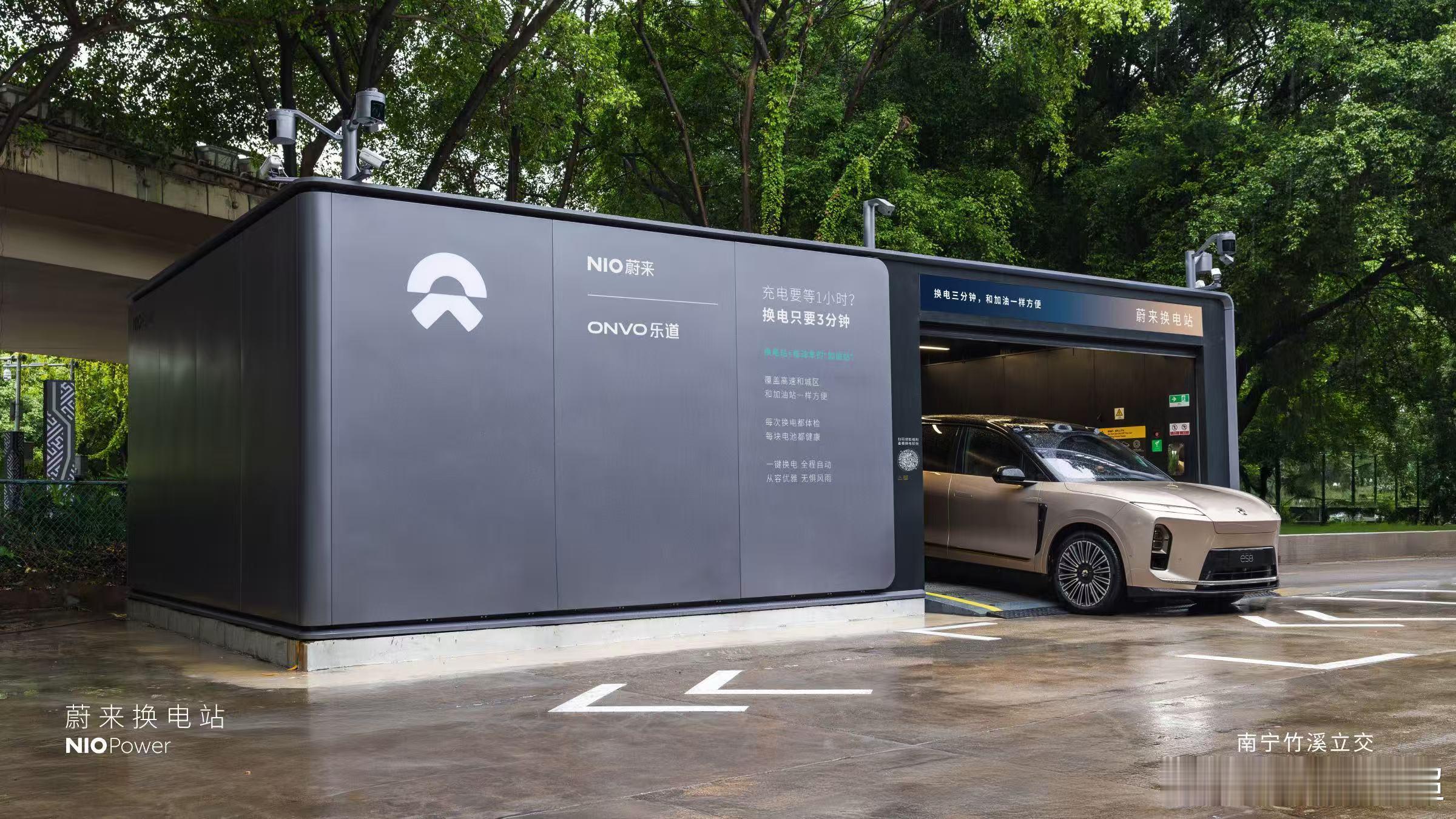 蔚来换电站 | 南宁竹溪立交 焕新上线截止2025年11月22日,NIO Power广西区域已上线54座换电站,其中高速换电站26座站。充电站105座,充电桩563根,覆盖39个区县。
