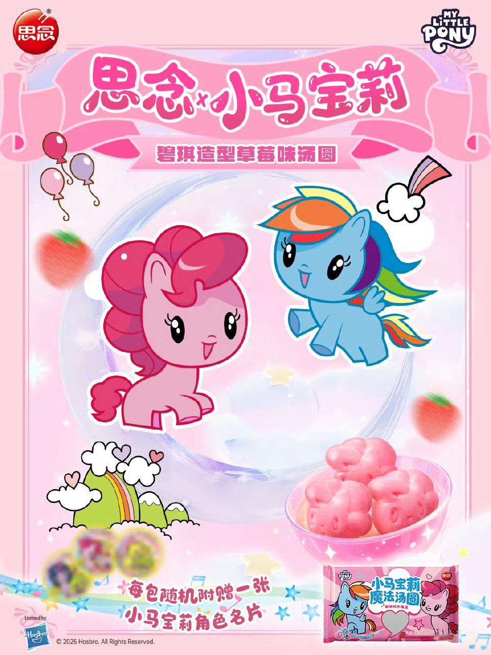 思念食品官方美味魔法思念加码思念是汤圆界整活天花板 谁的童年DNA动了!思念和小马宝莉联名也太会了吧!——碧琪的草莓酸甜、紫悦的蓝莓馥郁、柔柔的黑芝麻核桃醇香,每一口都是颜值与美味的双重暴击!作为汤圆界的“整活天花板”,思念食品的创新从未脱离对品质的坚守。从原料采购到生产加工,每一个环节都严格把控。选用东北优质糯米,经过多道工序研磨成粉,确保汤圆外皮软糯Q弹、不易破;馅料选材考究,坚果类颗粒饱满,果品类新鲜多汁,糖类严格控制用量,兼顾美味与健康。先进的生产设备与传统工艺相结合,既保证了产品的标准化生产,又保留了手工制作的温度,让每一颗思念汤圆都承载着对消费者的责任与关爱。最让人安心的是,汤圆用天然果蔬汁调色,没有乱七八糟的添加剂🍃 宝妈们给娃吃着超放心,自己吃的时候看着这彩虹配色,心情都跟着变得明媚起来,连吃饭都成了一件充满仪式感的快乐事~