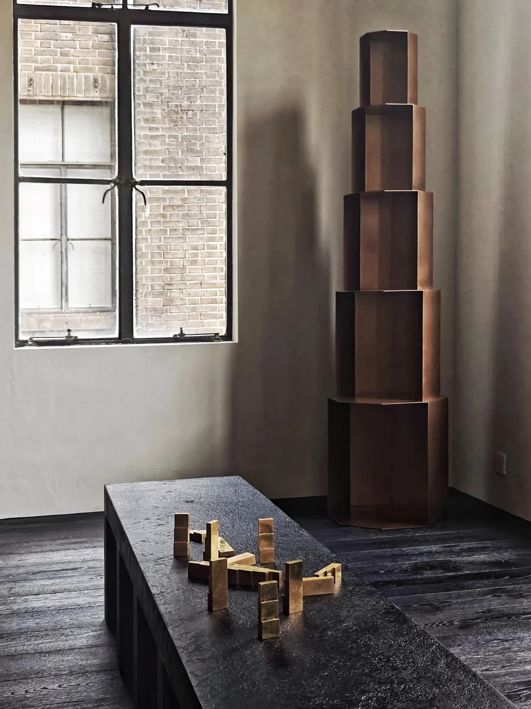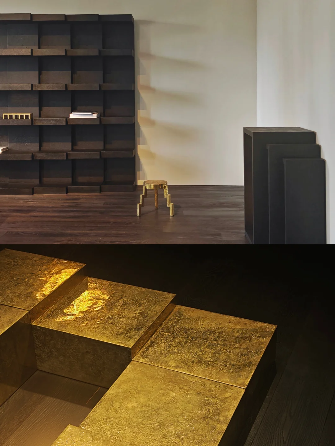 一墙之隔 THE WALL BETWEEN SINGCHAN独立空间开幕展 📅11月8日-12月14日 📍四川中路33号创业大楼817 需🐟约 ⬛️2025年新品THEWALL15模块立柜,和边境系列Borderland原有作品组合阵列,整体营造战后纪念碑氛围,表达对战争的反对与对和平的期待。 ⬛️边境系列2022年以长城为切入点解读地缘冲突,2024年从西安碑林《古代长城分布图》拓本探讨时间塑形。 ⬛️设计师/创始人陈星宇曾对设计产生怀疑,苦恼是否制造“多余”。思考之后,他开始追求本质,希望创造“简单、多元、灵活”的物件,注重寻找“共性”,认为经时间历练的物品皆因简单而留存。 ⬛️SINGCHAN是陈星宇2020年在广州成立的设计工作室,致力于从不同文明、时代中汲取灵感,通过设计重构,创造连接过去与当下的新物件。 👉去年SINGCHAN在何东旧居的个展以黑红为主色调,这一次的独立空间则是黑金,空间不大,陈列的设计家具比较精简,但整体效果还是很不错的。 👉可以和其他楼层的画廊一起参观,包括有:2楼库比森,7楼周围艺术,8楼gallery OM,另外对面华尔道夫一楼有artPDF的展览《确实爱》,不远处的四川中路133号还有Bluerider和RF.lab,均有展览。 💗关注我,每天带你免费看展💗