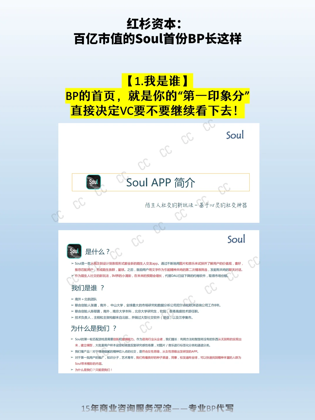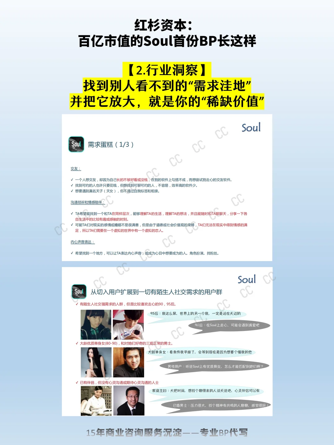 一份平庸的BP,展示的是“做什么” 一份顶级的BP,传递的是“为什么” 数据是船身,故事才是风帆 看懂Soul的早期BP 你将明白—— 投资人投的不是你的现在, 而是他们能想象到的、有你参与的未来