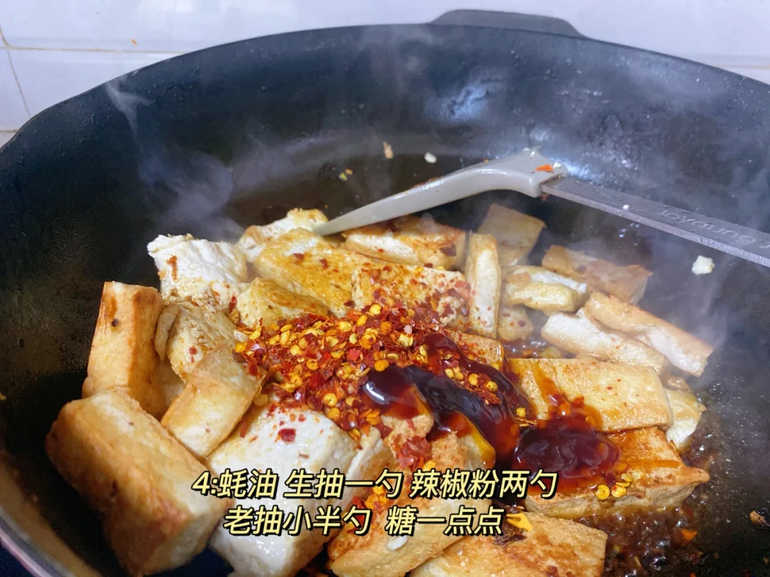 吃到家里味儿了 小炒豆腐 这个做法也是yyds ✨食材:老豆腐(可以买嫩豆腐)蒜末 辣椒粉 蒜苗(葱也可) 1⃣️:豆腐全部切块,锅里倒油 放豆腐中火煎至两面金黄 把豆腐扒拉到一边 下蒜末爆香 然后跟豆腐一起翻炒均匀 2⃣️:转小火放一勺蚝油 一勺🥄生抽 两勺辣椒粉(不能吃辣少放点)老抽半勺 白糖一丢丢。转大火翻炒均匀。 3⃣️:加入一碗水(吃饭的小碗)大火煮开转中火煮五分钟。起锅前放入蒜苗叶或葱段,然后淋一点水淀粉。 超级下饭呢[偷笑R] 好好吃饭呀🤘🏻