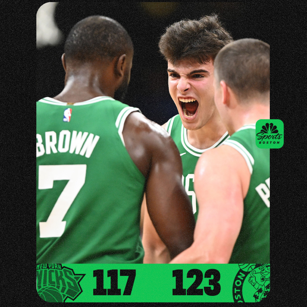 凯尔特人国度 123-117 ! Celtics Win ! 波士顿凯尔特人队主场击败纽约尼克斯队 ! 常规赛战绩【 12-9 】 ☘️ 💚 🏆球员数据 :Jaylen Brown 42分4篮板4助攻Derrick White 22分2篮板5助攻Anfernee Simons 12分1篮板3助攻Josh Minott 11分6篮板1盖帽Payton Pritchard 10分4篮板3助攻Jordan Walsh 8分6篮板1抢断Neemias Queta 8分6篮板Sam Hauser 6分4篮板1抢断Hugo Gonzalez 4分5篮板1抢断Baylor Scheierman 1助攻
