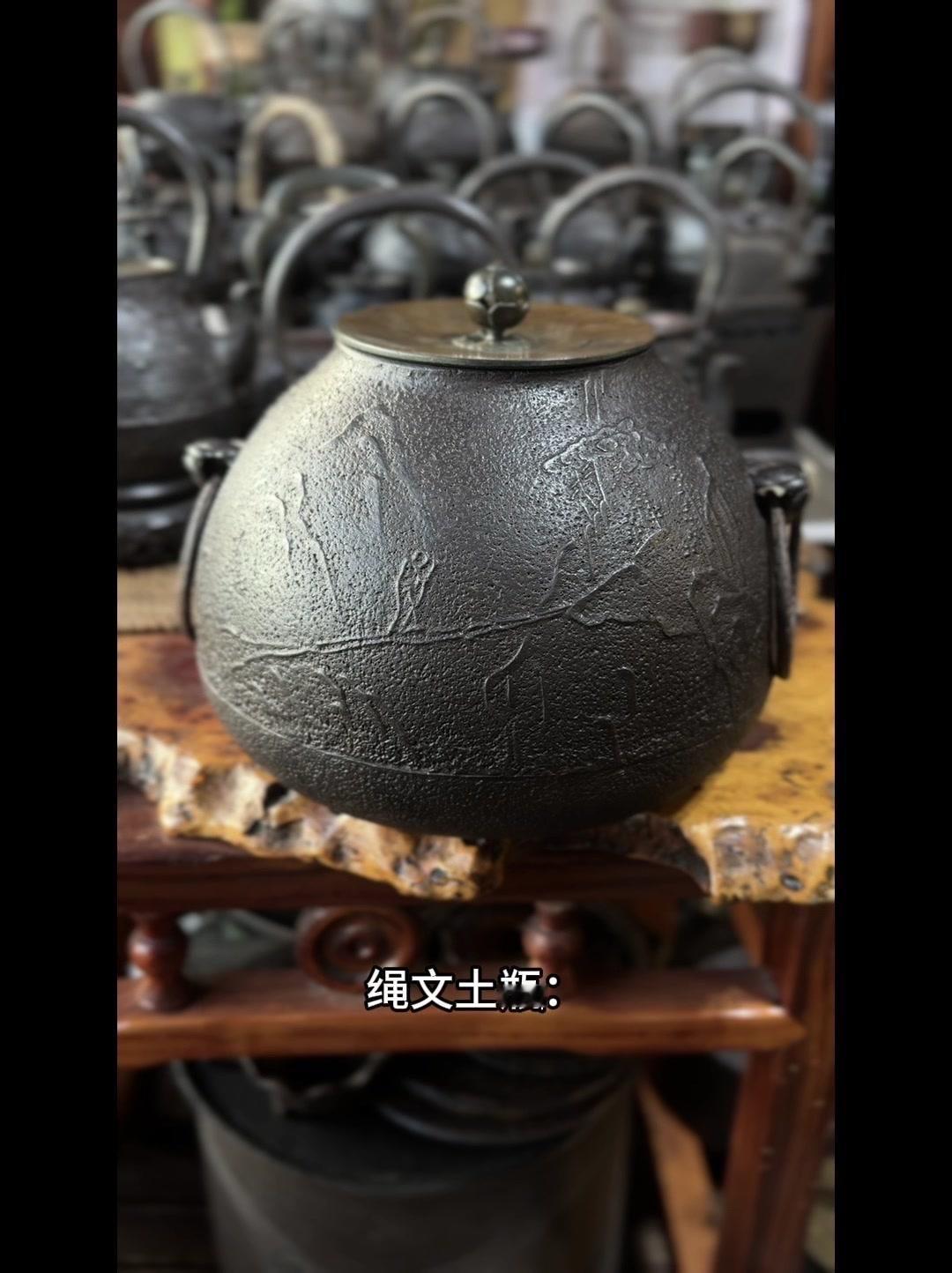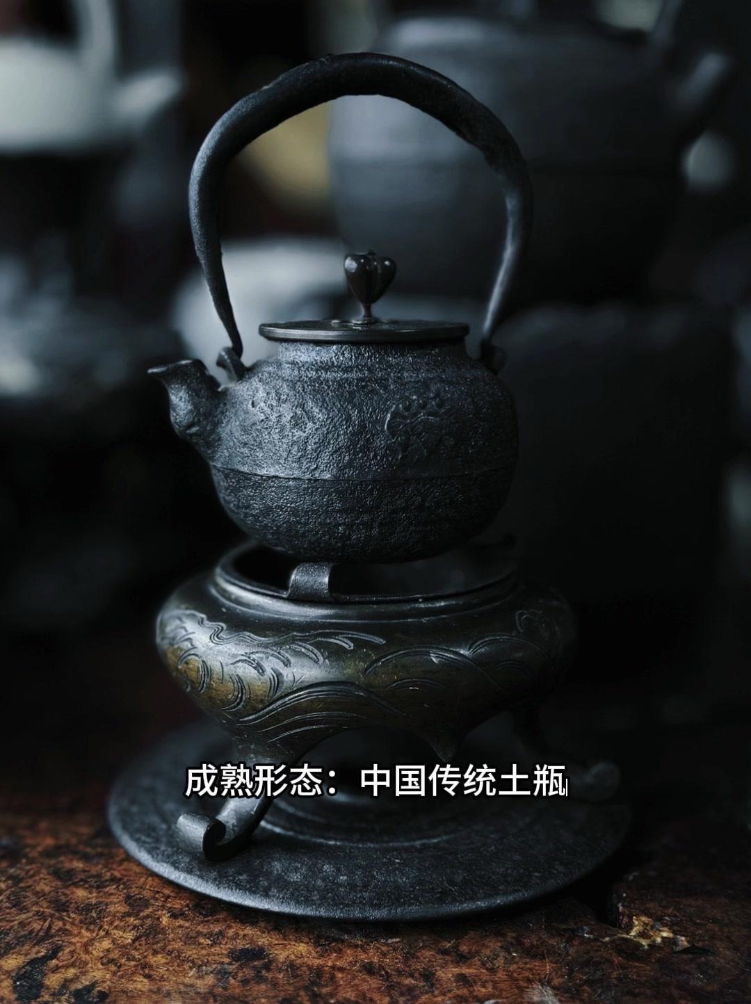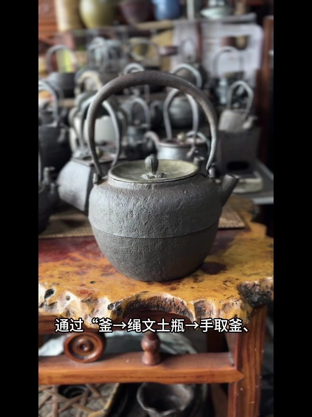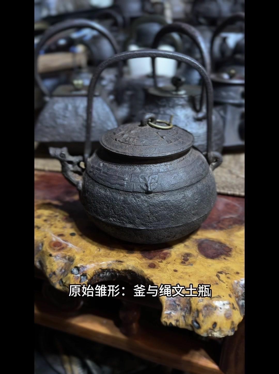 从三千年前的绳文土瓶到现代铁壶,每个器型都藏着古人的生活智慧。 釜是最原始的炊具,厚重无把手,用来煮食烧水,像极了铁壶的童年。日本绳文时代的陶器土瓶,小口鼓腹短流,已经有了储水的功能,流口设计为后来的铁壶打下基础。 过渡阶段的器型超实用:带把手的手取釜能端着煮水,铫子的细长流口方便分茶,水注的长流精准注水,药罐还能煎药,不同功能的器型让铁壶越来越多样。 土瓶小口长颈鼓腹的造型,几乎就是现代铁壶的前身。融合了各种器型优点后,中国传统土瓶成为经典,实用性和文化感都拉满。 铁壶的变化和东亚茶文化分不开,从陶器到金属,材质进步背后是茶道对器具功能和美学的追求。每个器型的演变,都是古人在实用和美学间找到的完美平衡。