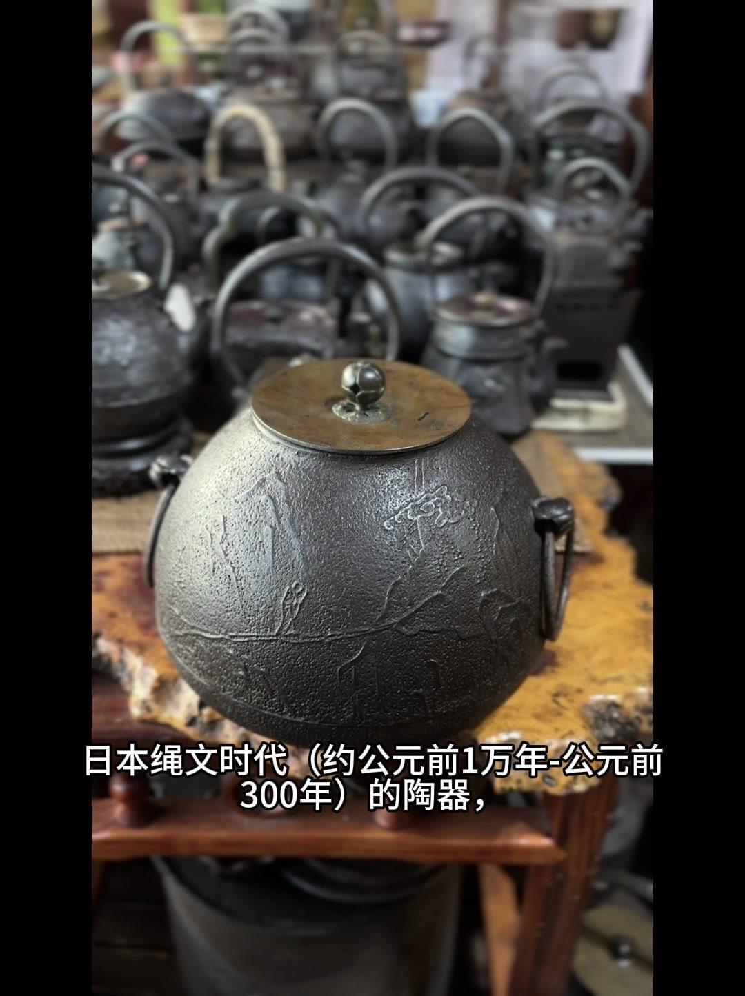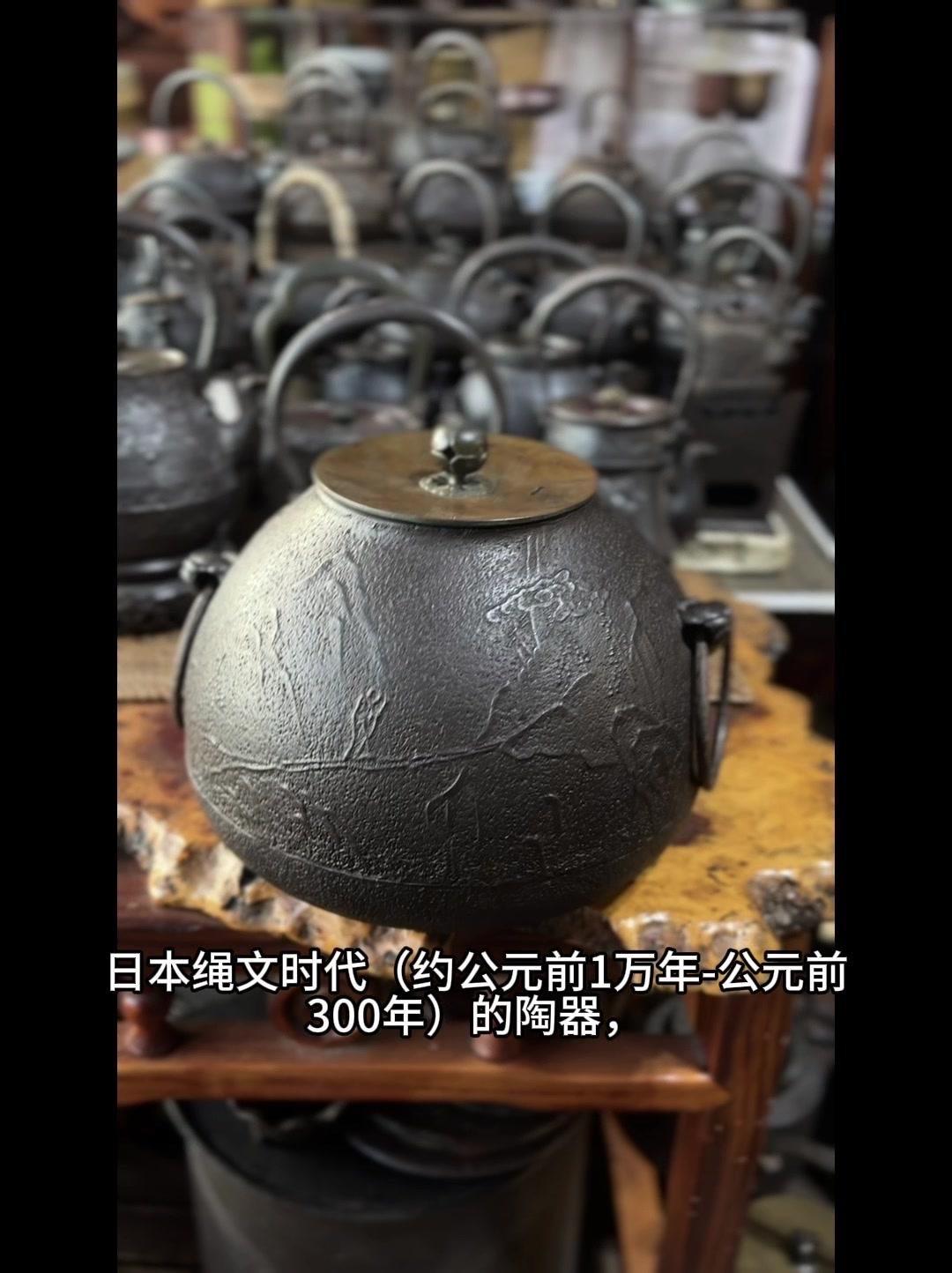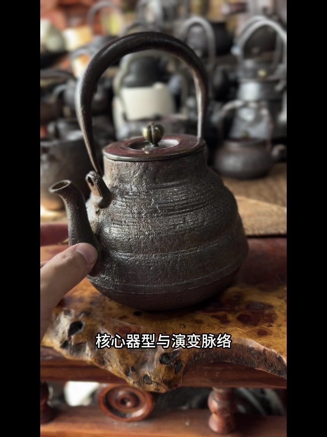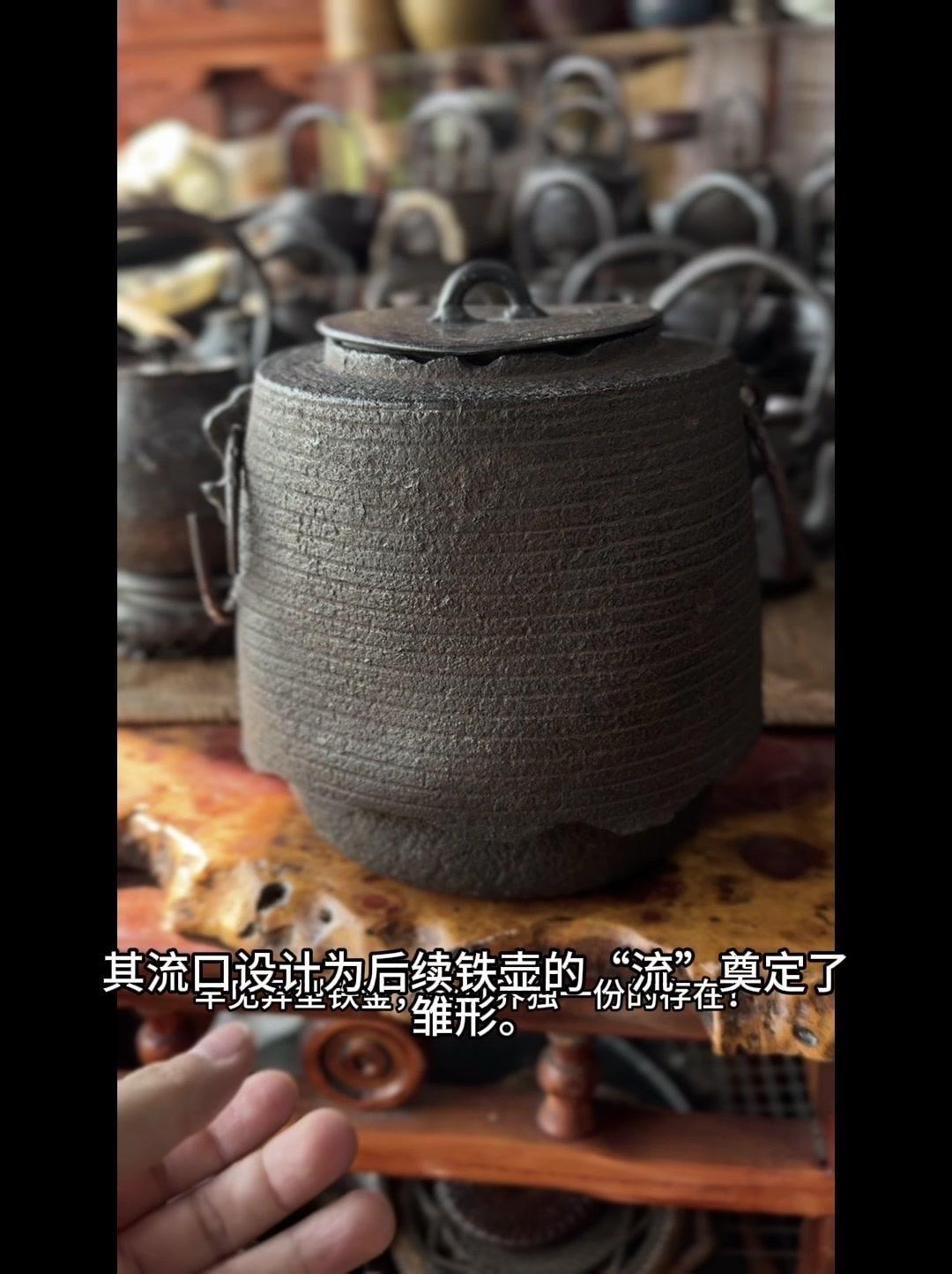 从三千年前的绳文土瓶到现代铁壶,每个器型都藏着古人的生活智慧。 釜是最原始的炊具,厚重无把手,用来煮食烧水,像极了铁壶的童年。日本绳文时代的陶器土瓶,小口鼓腹短流,已经有了储水的功能,流口设计为后来的铁壶打下基础。 过渡阶段的器型超实用:带把手的手取釜能端着煮水,铫子的细长流口方便分茶,水注的长流精准注水,药罐还能煎药,不同功能的器型让铁壶越来越多样。 土瓶小口长颈鼓腹的造型,几乎就是现代铁壶的前身。融合了各种器型优点后,中国传统土瓶成为经典,实用性和文化感都拉满。 铁壶的变化和东亚茶文化分不开,从陶器到金属,材质进步背后是茶道对器具功能和美学的追求。每个器型的演变,都是古人在实用和美学间找到的完美平衡。