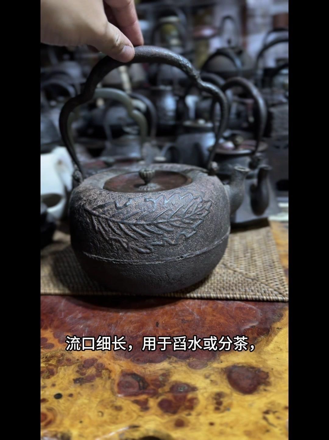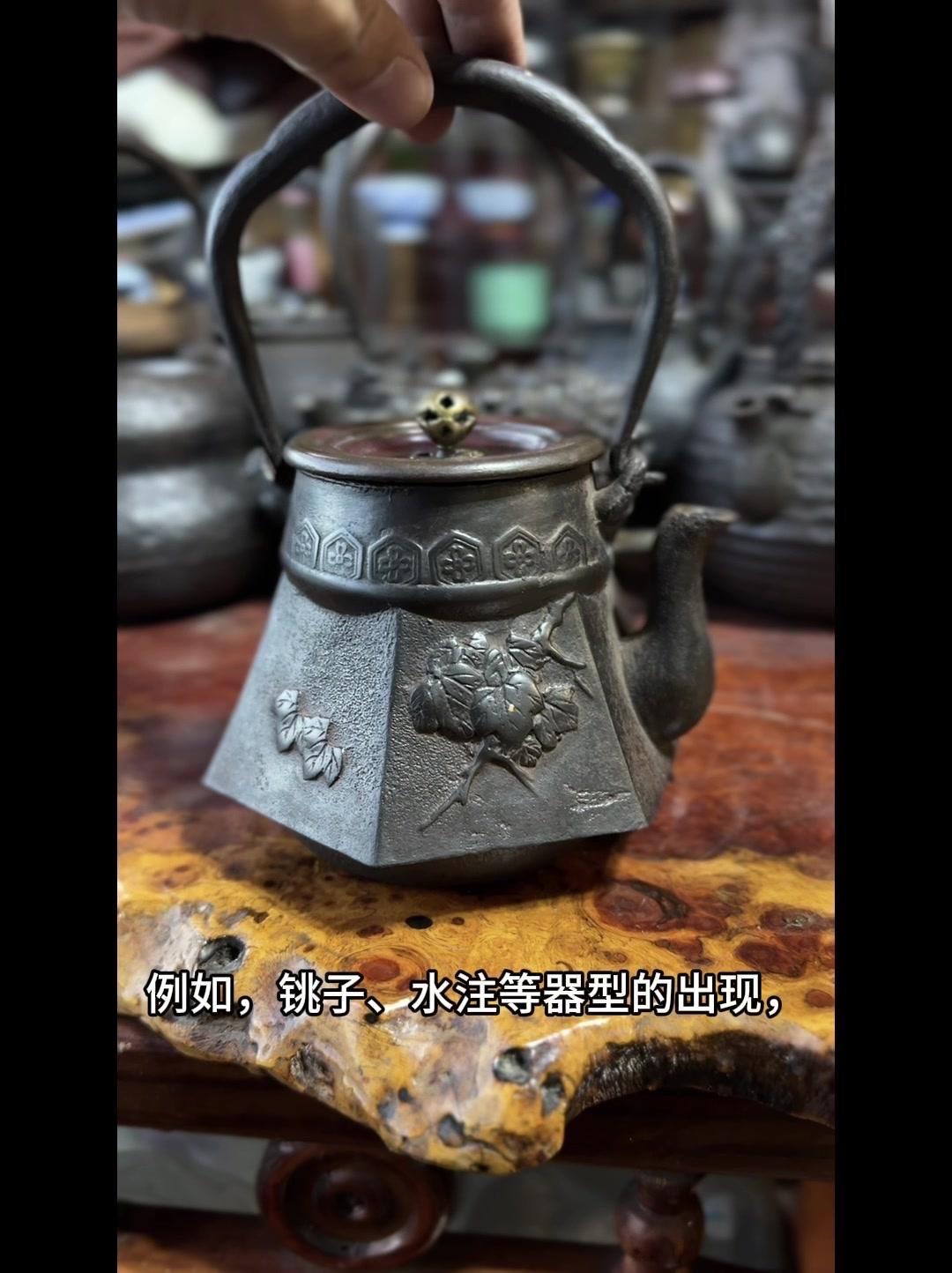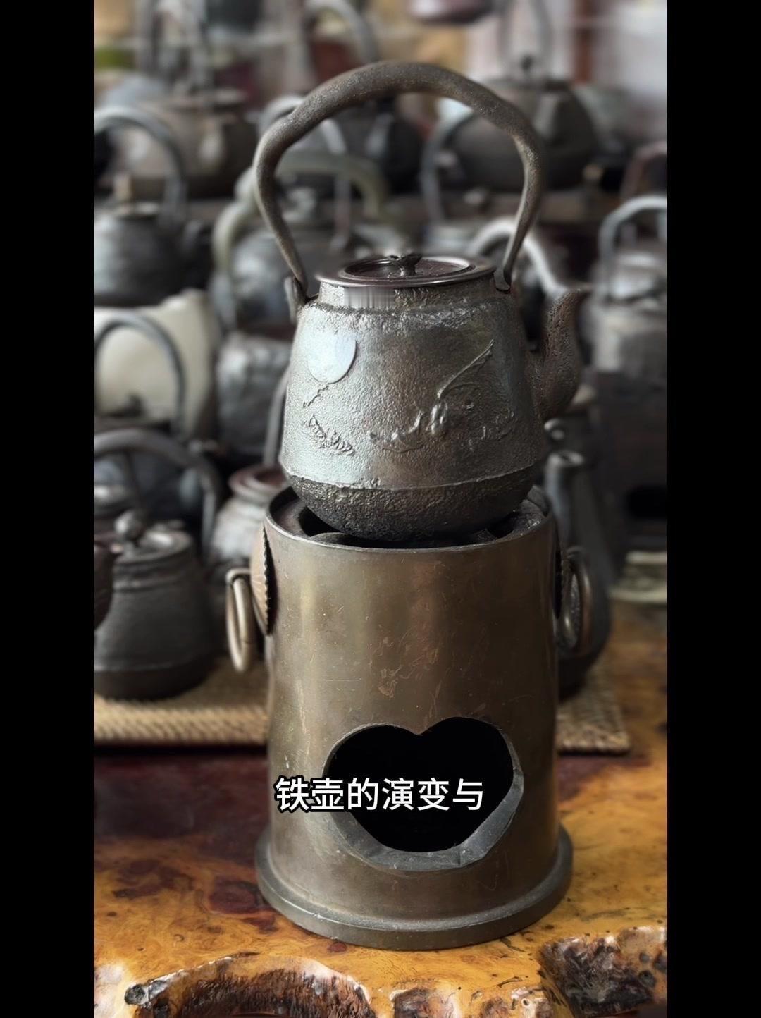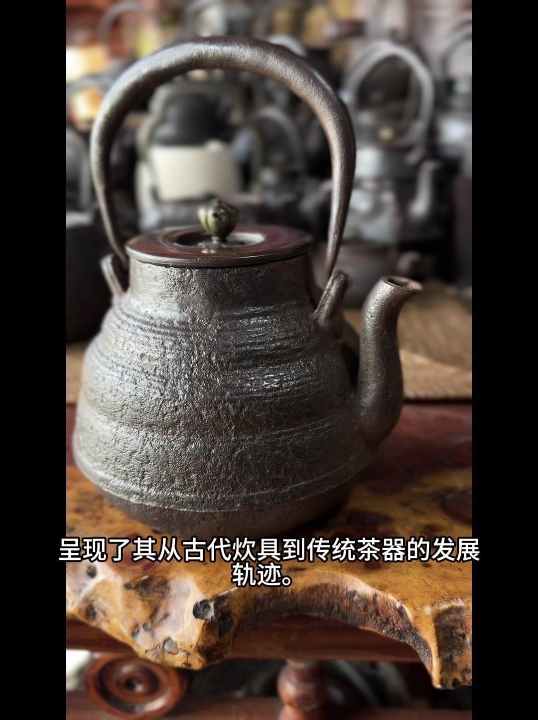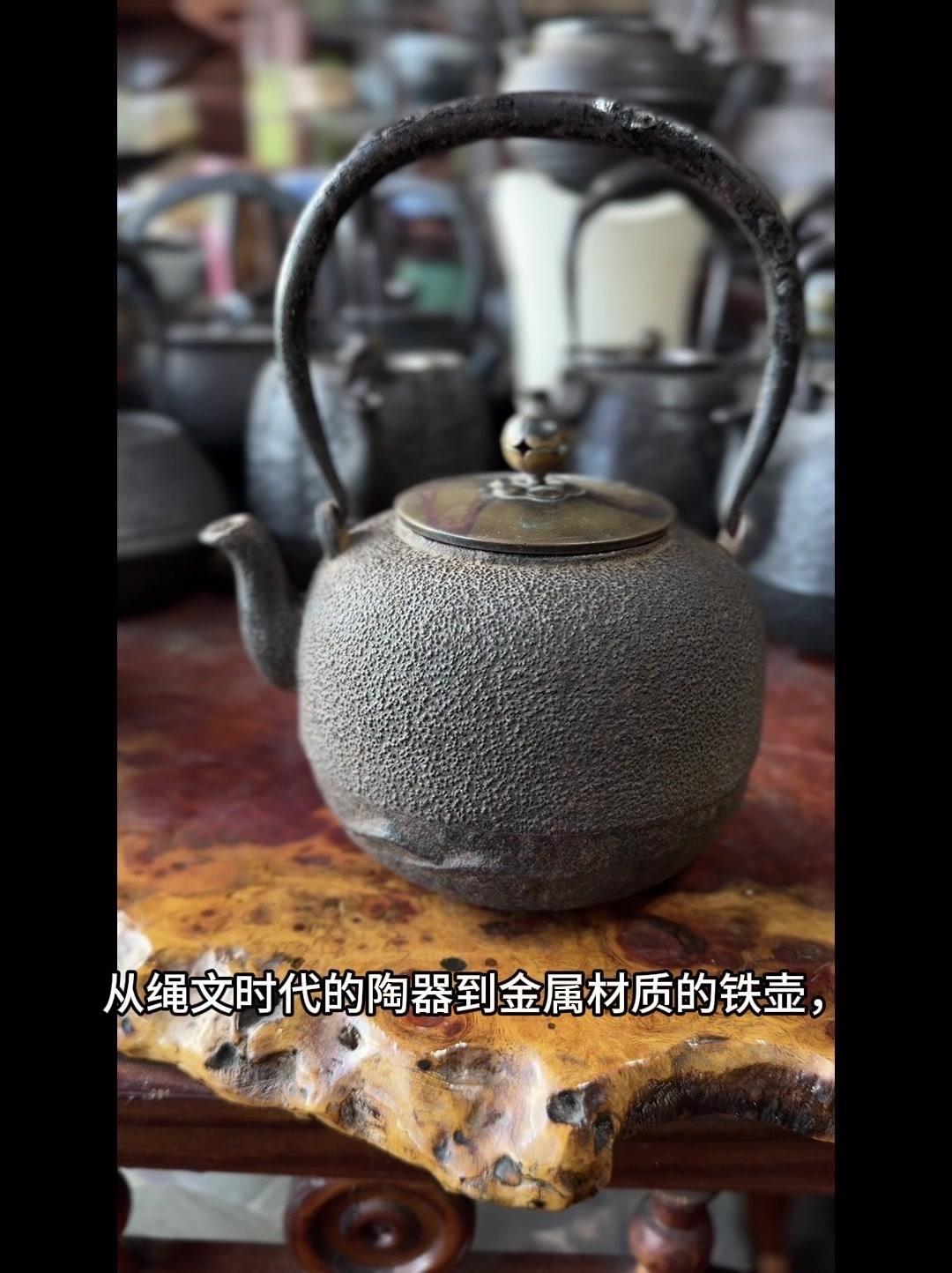 从三千年前的绳文土瓶到现代铁壶,每个器型都藏着古人的生活智慧。 釜是最原始的炊具,厚重无把手,用来煮食烧水,像极了铁壶的童年。日本绳文时代的陶器土瓶,小口鼓腹短流,已经有了储水的功能,流口设计为后来的铁壶打下基础。 过渡阶段的器型超实用:带把手的手取釜能端着煮水,铫子的细长流口方便分茶,水注的长流精准注水,药罐还能煎药,不同功能的器型让铁壶越来越多样。 土瓶小口长颈鼓腹的造型,几乎就是现代铁壶的前身。融合了各种器型优点后,中国传统土瓶成为经典,实用性和文化感都拉满。 铁壶的变化和东亚茶文化分不开,从陶器到金属,材质进步背后是茶道对器具功能和美学的追求。每个器型的演变,都是古人在实用和美学间找到的完美平衡。