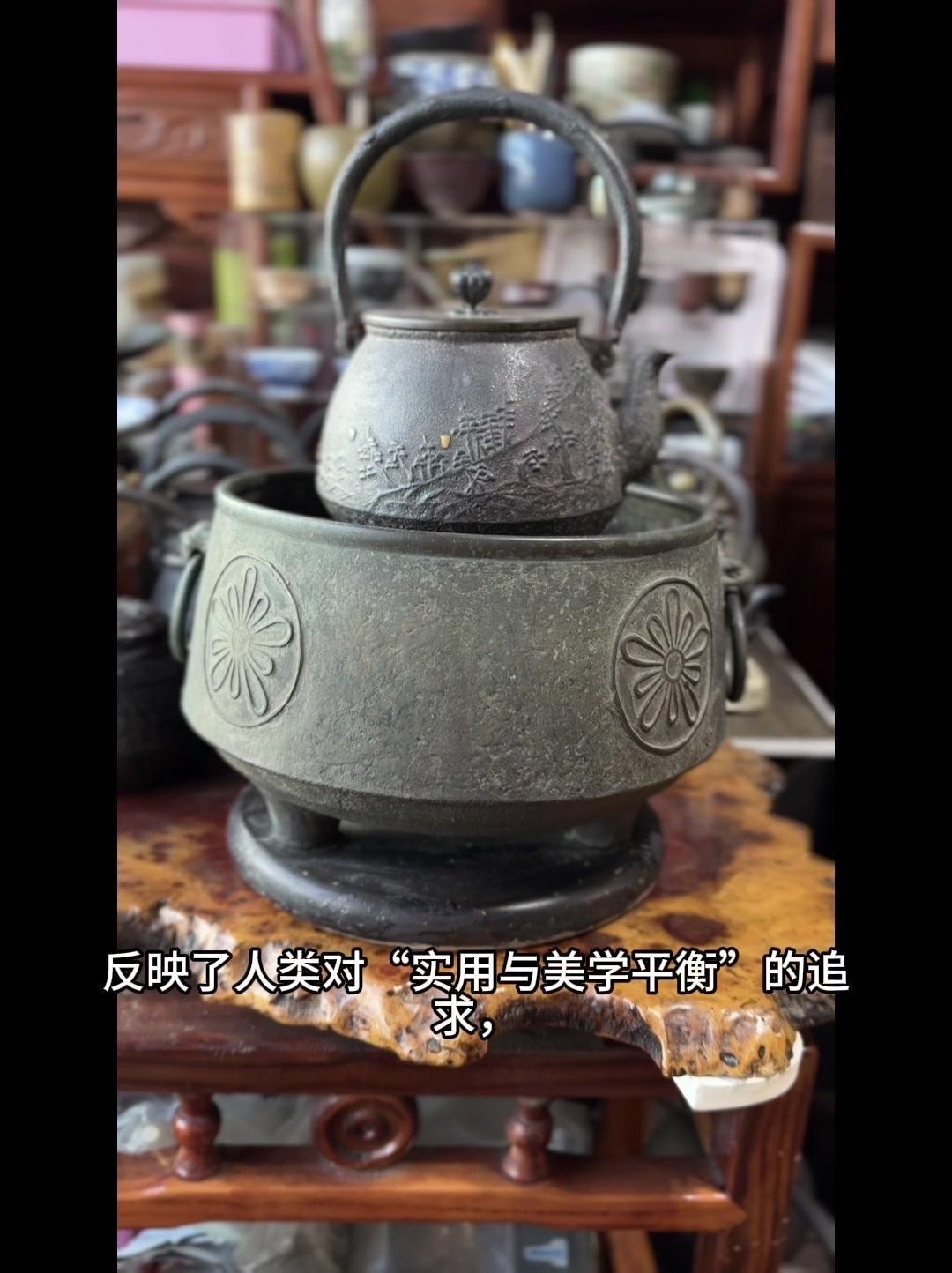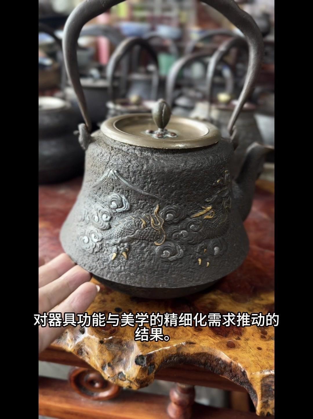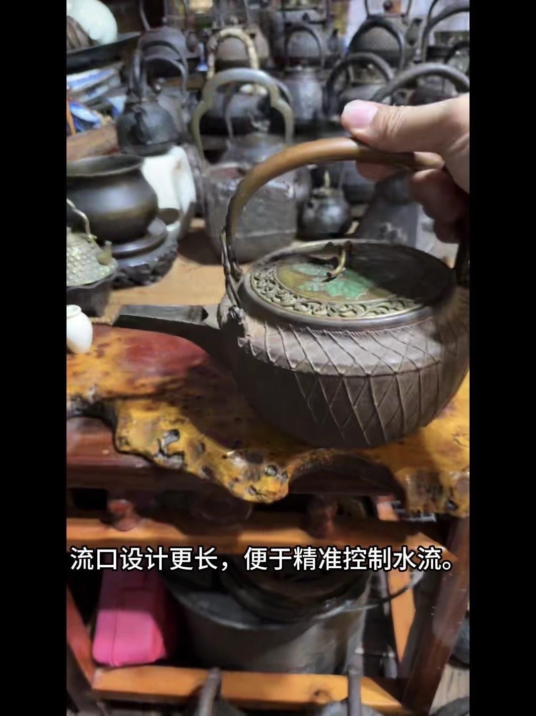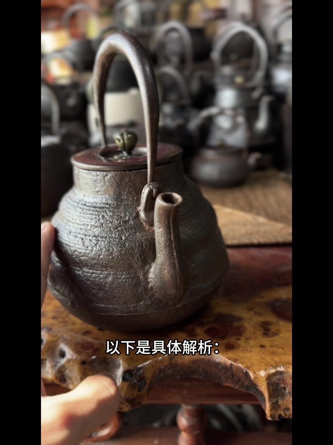 从三千年前的绳文土瓶到现代铁壶,每个器型都藏着古人的生活智慧。 釜是最原始的炊具,厚重无把手,用来煮食烧水,像极了铁壶的童年。日本绳文时代的陶器土瓶,小口鼓腹短流,已经有了储水的功能,流口设计为后来的铁壶打下基础。 过渡阶段的器型超实用:带把手的手取釜能端着煮水,铫子的细长流口方便分茶,水注的长流精准注水,药罐还能煎药,不同功能的器型让铁壶越来越多样。 土瓶小口长颈鼓腹的造型,几乎就是现代铁壶的前身。融合了各种器型优点后,中国传统土瓶成为经典,实用性和文化感都拉满。 铁壶的变化和东亚茶文化分不开,从陶器到金属,材质进步背后是茶道对器具功能和美学的追求。每个器型的演变,都是古人在实用和美学间找到的完美平衡。