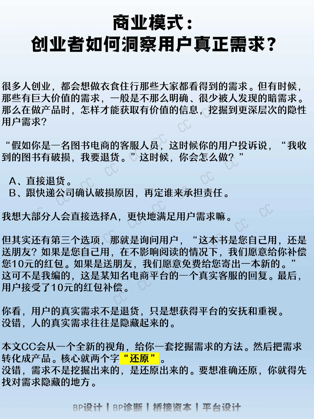 本文CC会从一个全新的视角,给你一套挖掘需求的方法。然后把需求转化成产品。核心就两个字“还原”。