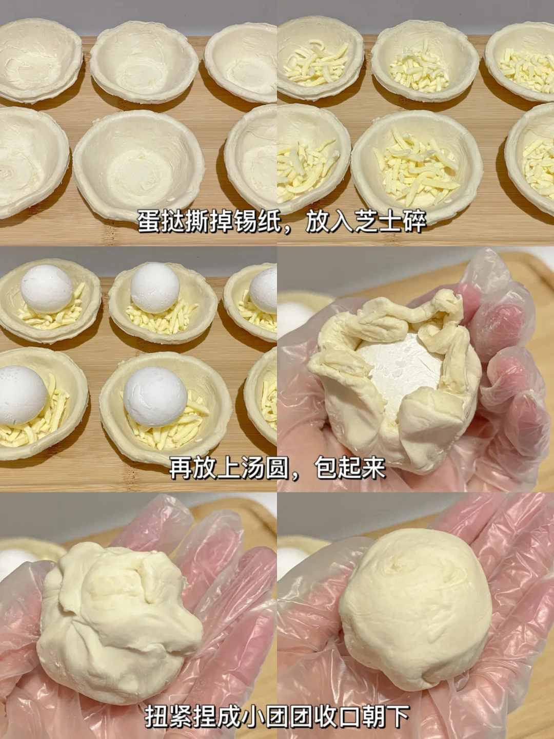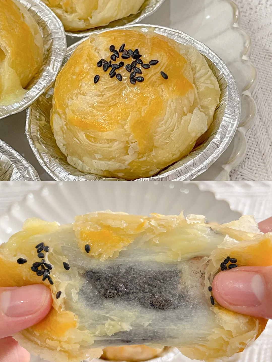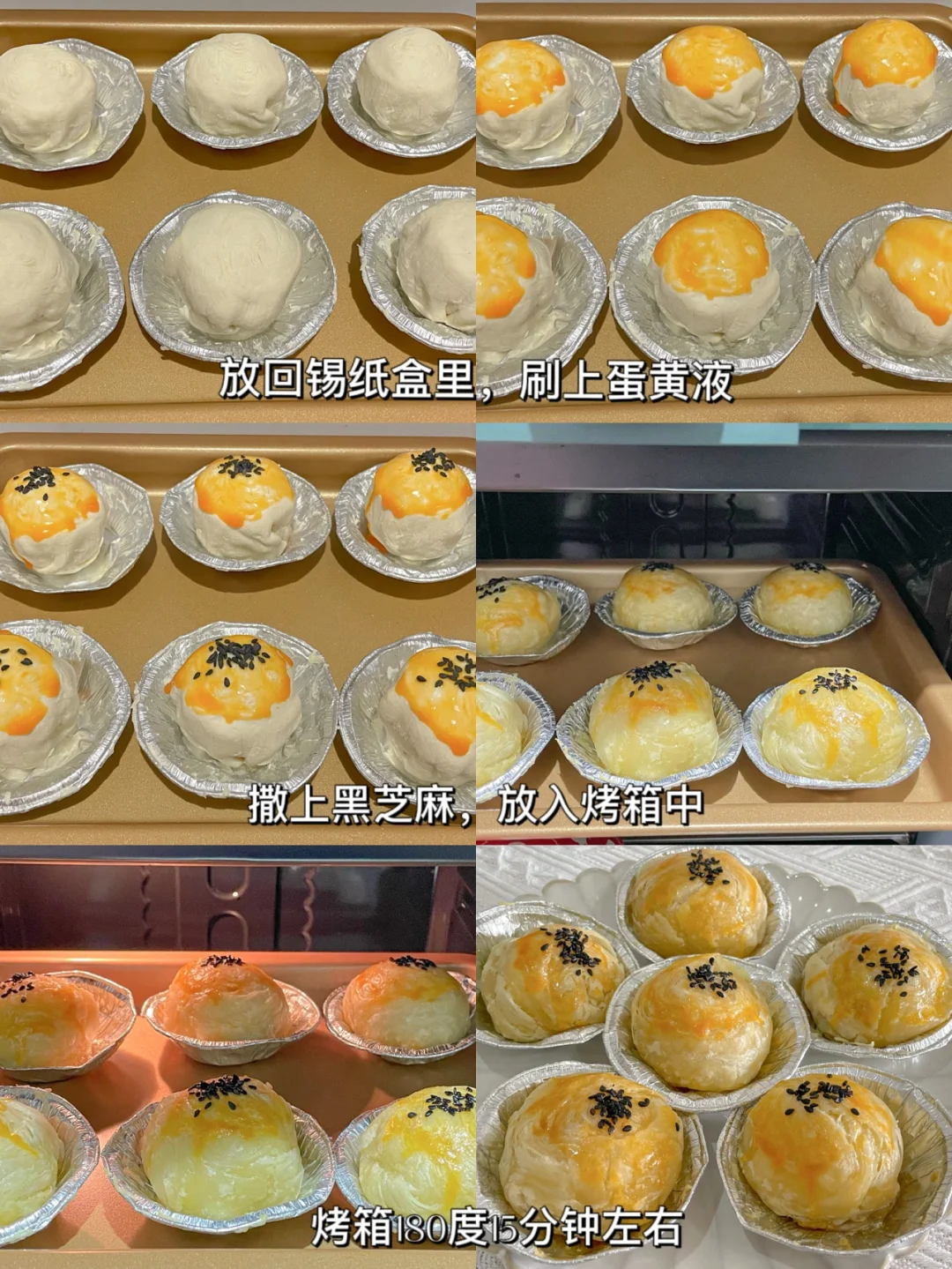 蛋挞皮的酥脆包裹着糯叽叽的黑芝麻汤圆和奶香的芝士碎,太绝了[赞R][赞R] 咬一口还会爆浆的汤圆酥,香甜软糯,巨巨巨好吃[色色R][色色R] 做法超简单,新手小包也🉑️轻松搞定,喜欢的赶紧试试呀~ 🌈食材: -蛋挞皮6个 -黑芝麻汤圆6个 -芝士碎适量 -黑芝麻适量 -蛋黄1个 🌈做法: 1⃣️蛋挞皮常温软化几分钟,撕掉蛋挞皮上的锡纸 2⃣️放入芝士碎和汤圆,包起来,捏紧捏成小团团收口朝下 3⃣️放回锡纸盒中,刷上蛋黄液,撒上黑芝麻 4⃣️放入预热好的烤箱180度15分钟左右