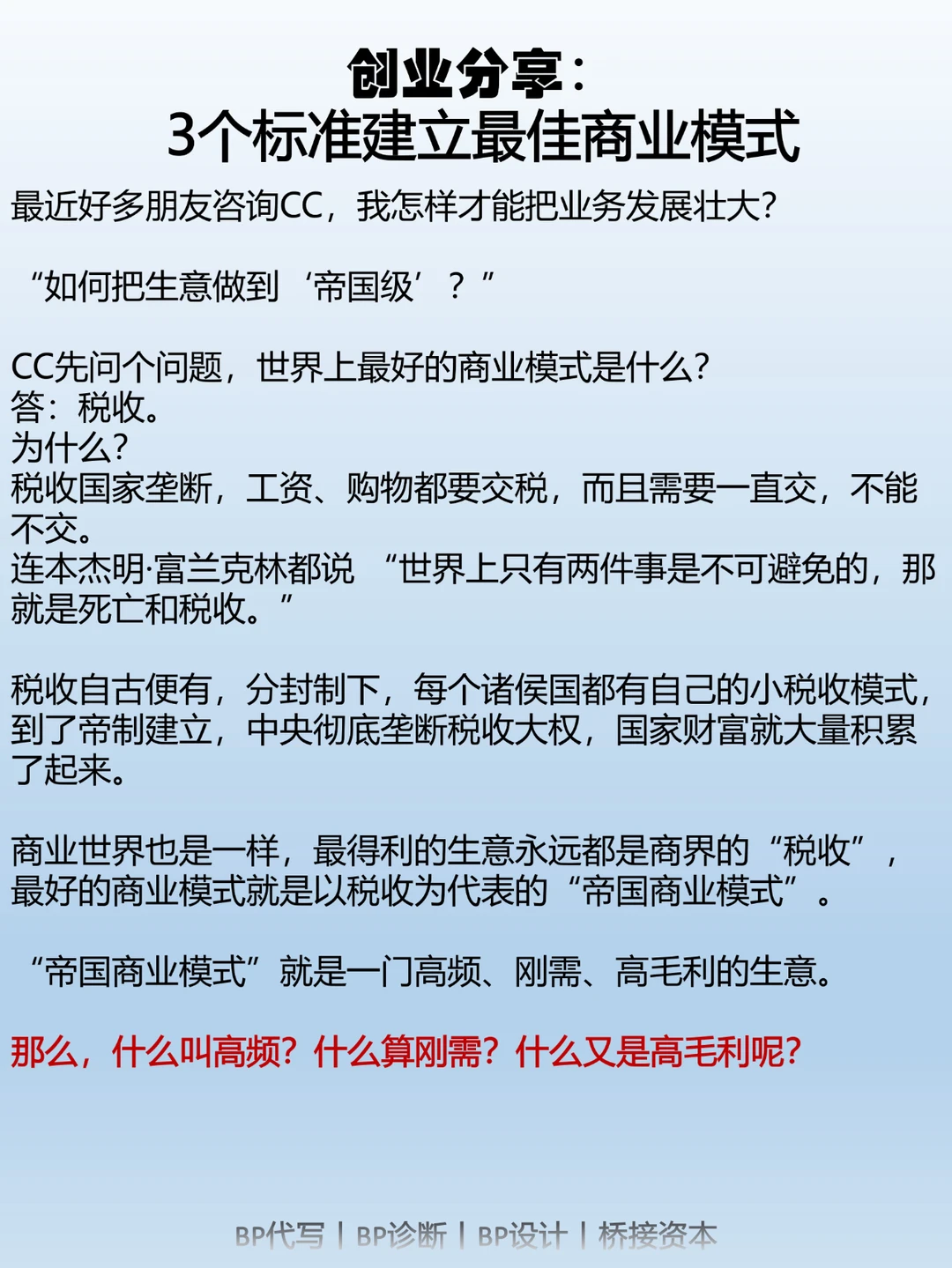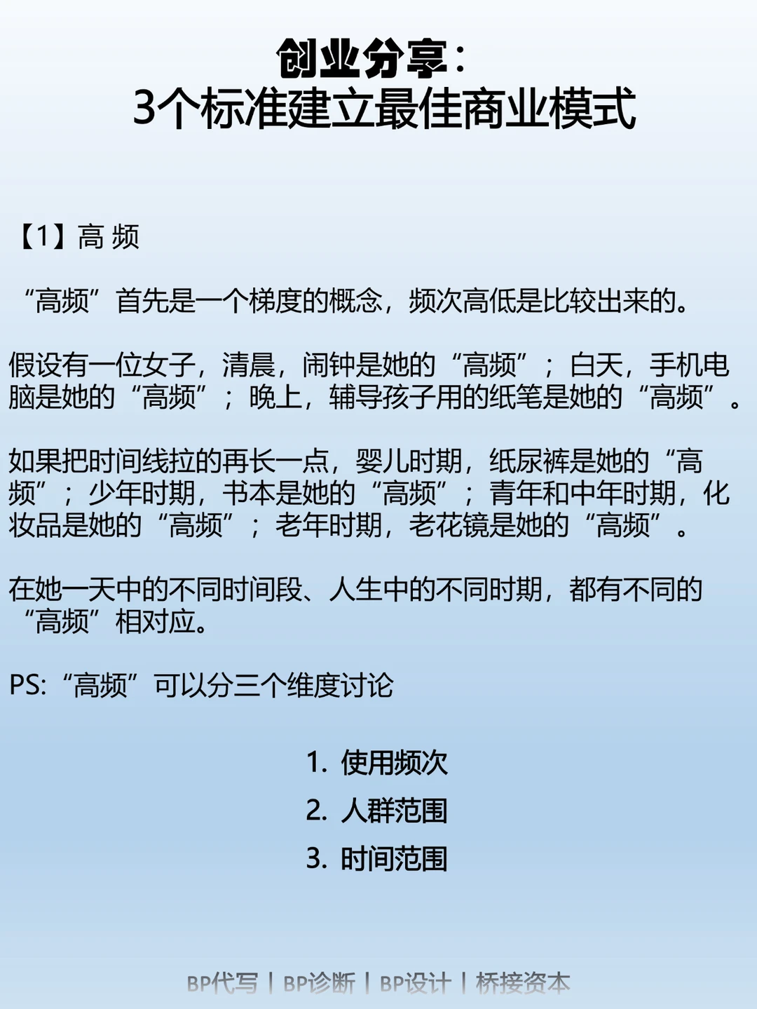 3个标准建立最佳商业模式:高频、刚需、高毛利。