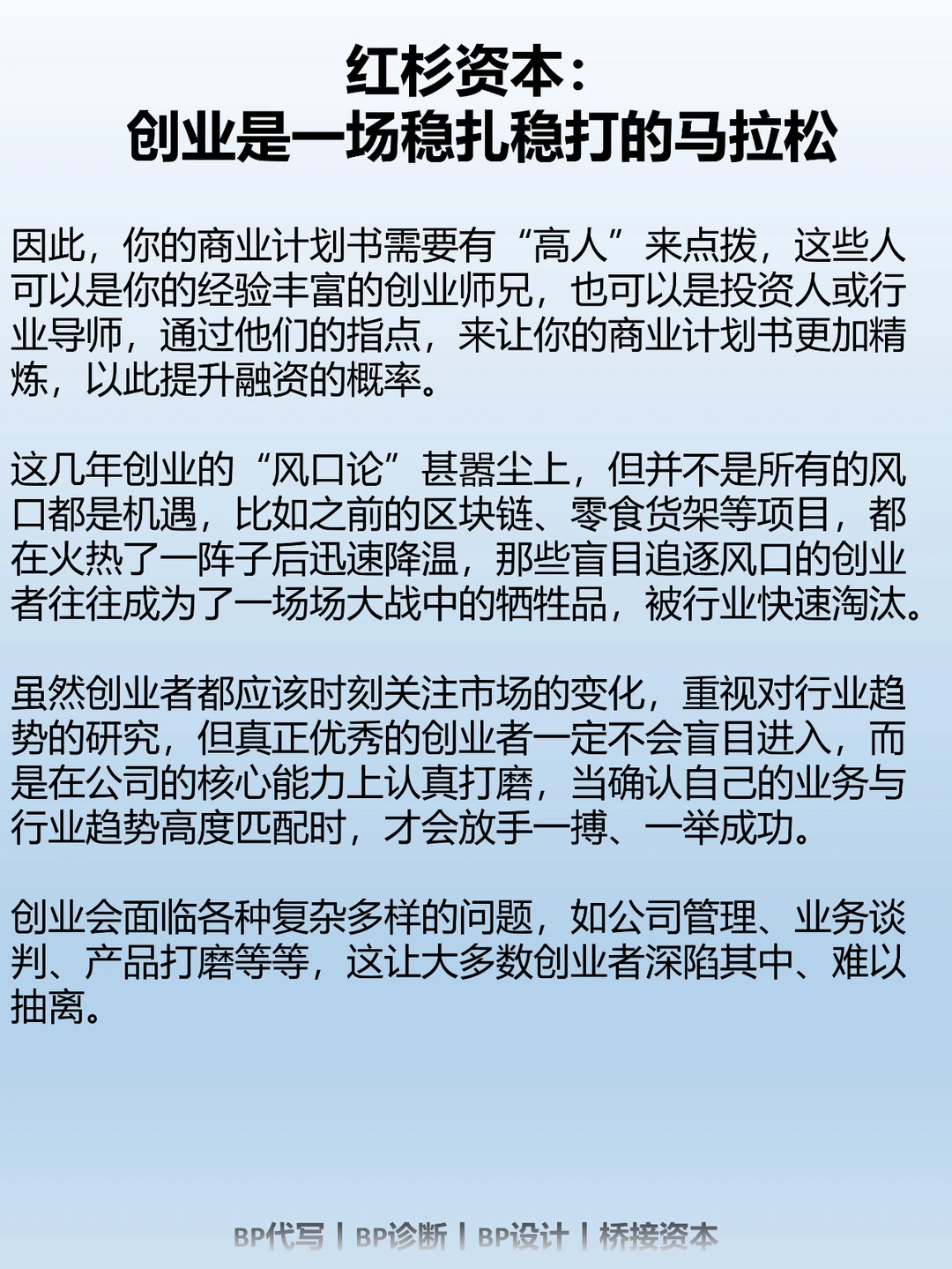 在创业过程中,创业者需要积极面对各种挑战和困难,保持稳定的节奏和决心。就像马拉松比赛一样,成功需要在持续不断的努力中逐渐积累,而非一蹴而就。稳扎稳打的策略意味着创业者应该注重基础工作、持续改进和迭代,不断学习和调整自己的计划,以适应市场的需求和变化。