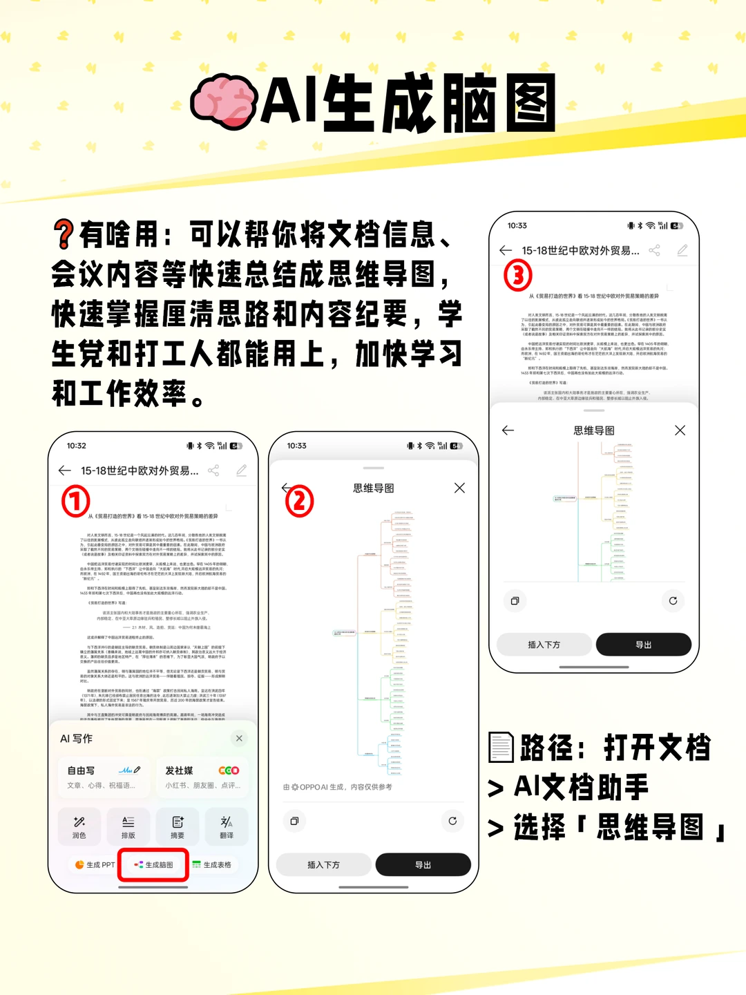 ✍🏻路径:打开文档 > AI文档助手 > 选择「思维导图」