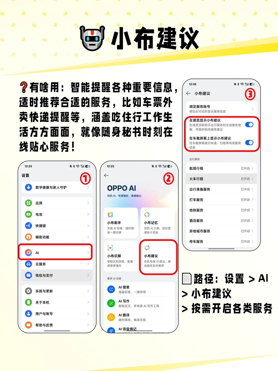 ✍🏻路径:设置 > AI > 小布建议 > 按需开启各类服务