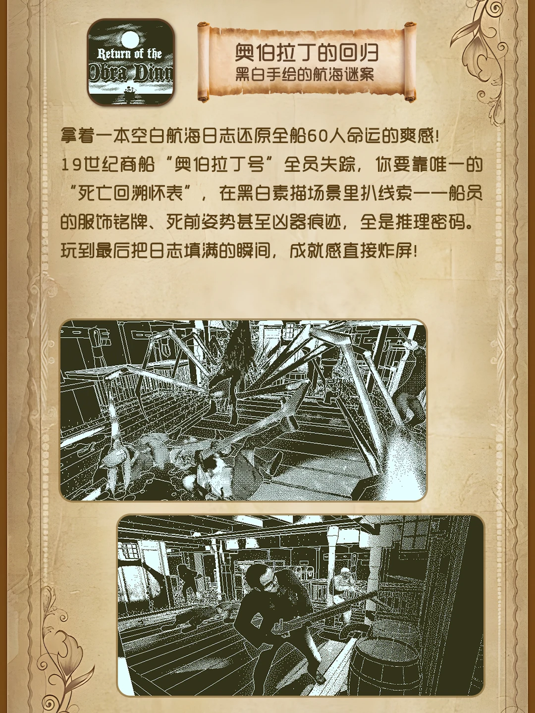 推理脑袋狂喜[哇R][哇R][哇R] 拒绝无脑点击的快餐解谜[暗中观察R]全是靠逻辑破案的宝藏[赞R] 从维多利亚庄园的凶案到19世纪商船[爆炸R]每款都把“沉浸式探案”焊在DNA里,细节控直接冲就对了! 🕵🏻♂️弗莱明庄园命案|法医视角的探案实录 🕵🏻♂️布莱克庄园的降灵会|超自然侦探推理 🕵🏻♂️奥伯拉丁的回归|黑白手绘的航海谜案 🕵🏻♂️金偶像谜案|连环凶案的线索拼图 🕵🏻♂️失落的记忆|90年代黑色悬疑剧 🕵🏻♂️灵视异闻|日式都市传说解谜