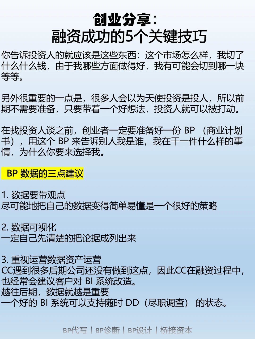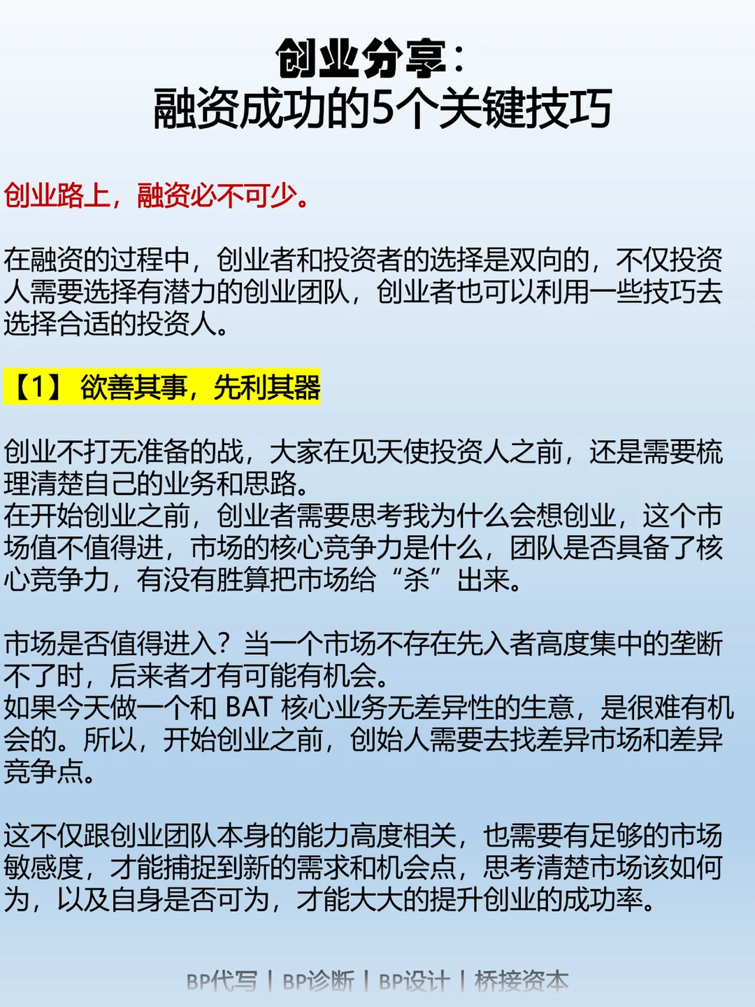 首先,要想融资成功,你得先准备好工具。就像干活得有好工具一样,你需要有一个高效的商业计划、可行性研究和漂亮的投资者演示文稿。这些都是助你取得成功的利器。