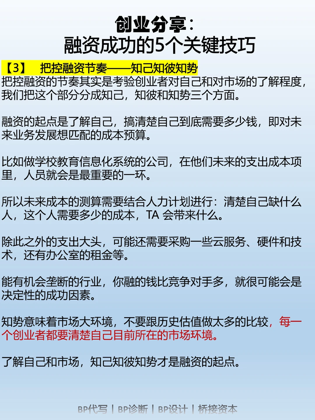第三,掌握融资的节奏非常重要。你要了解市场动态,了解投资者的喜好和态度,这样才能有针对性地制定你的策略。了解自己、了解对方、了解环境,这样你才能在融资的过程中游刃有余。