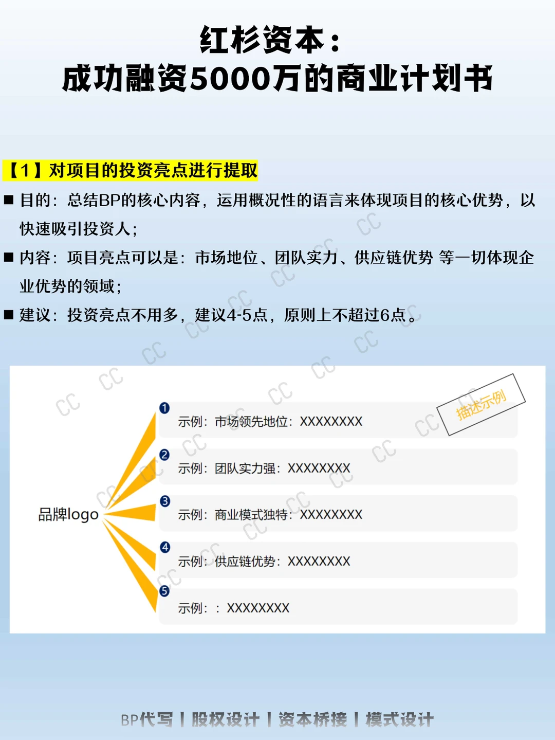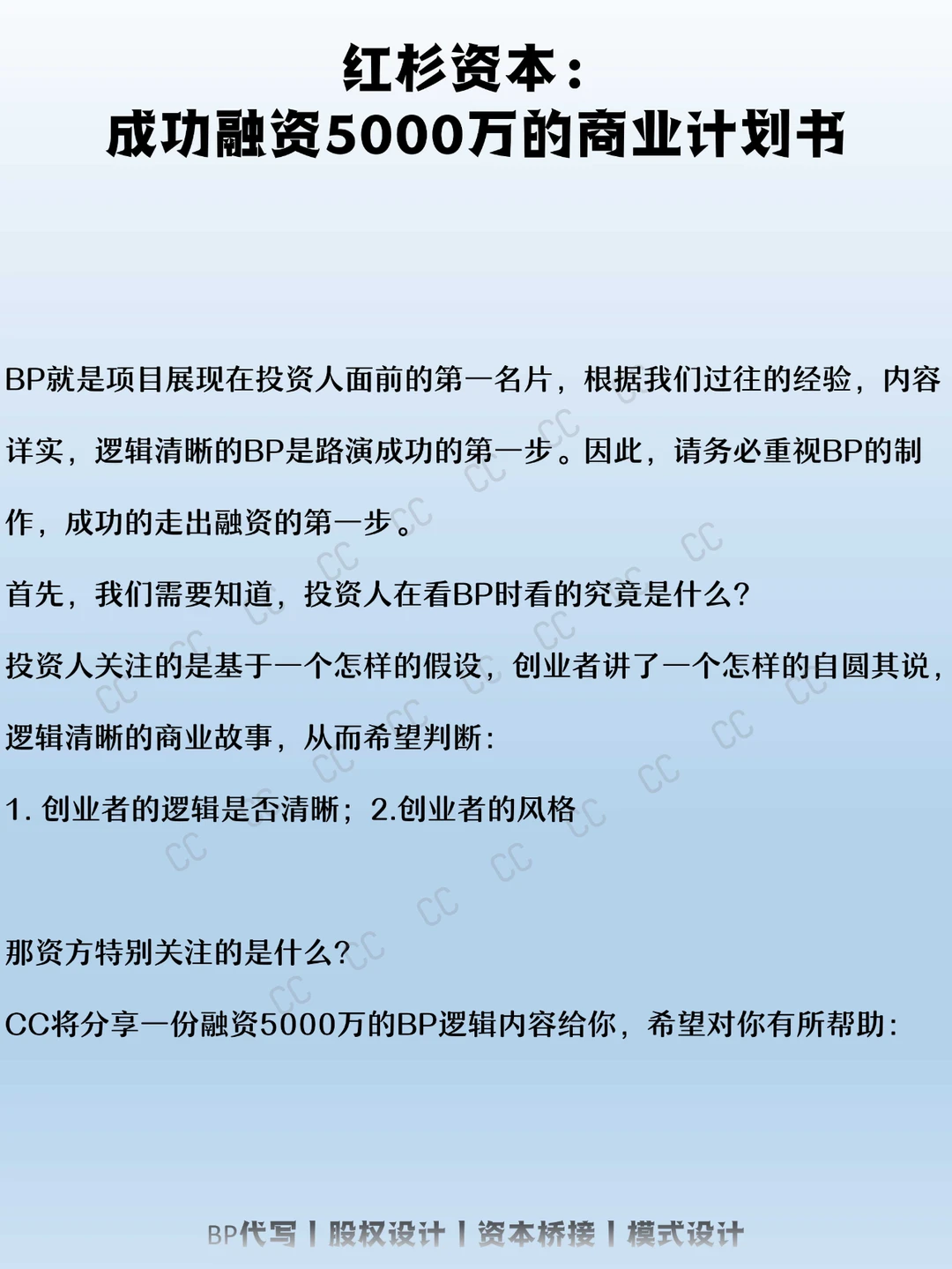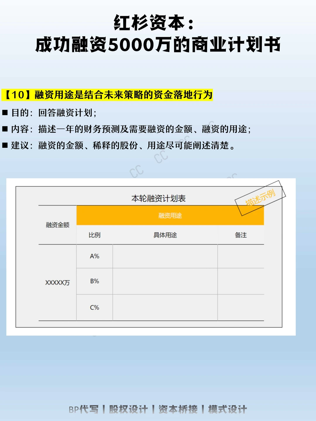 CC将分享一份融资5000万的BP逻辑内容给你,希望对你有所帮助: